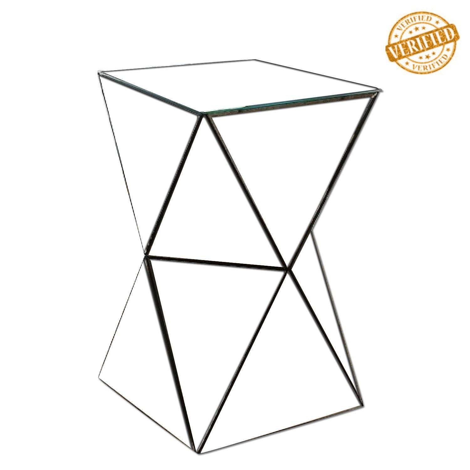 Seller's Notes:AD Verified: This item has been personally verified & authenticated by AptDeco via personal visit to the seller. Feel free to purchase with complete confidence From all angles. Whether you’re going for old-Hollywood glamour or edgy, angular style, the Faceted Mirror Side Table’s antiqued mirror surface reflects and refracts light, lightening up the look of any room. • 12.5"sq. x 20.5"h. • Engineered wood; mirror paneling. • Mirrored surface is glazed with an antiqued finish. • Arrives fully assembled. • Wipe clean. • Imported.