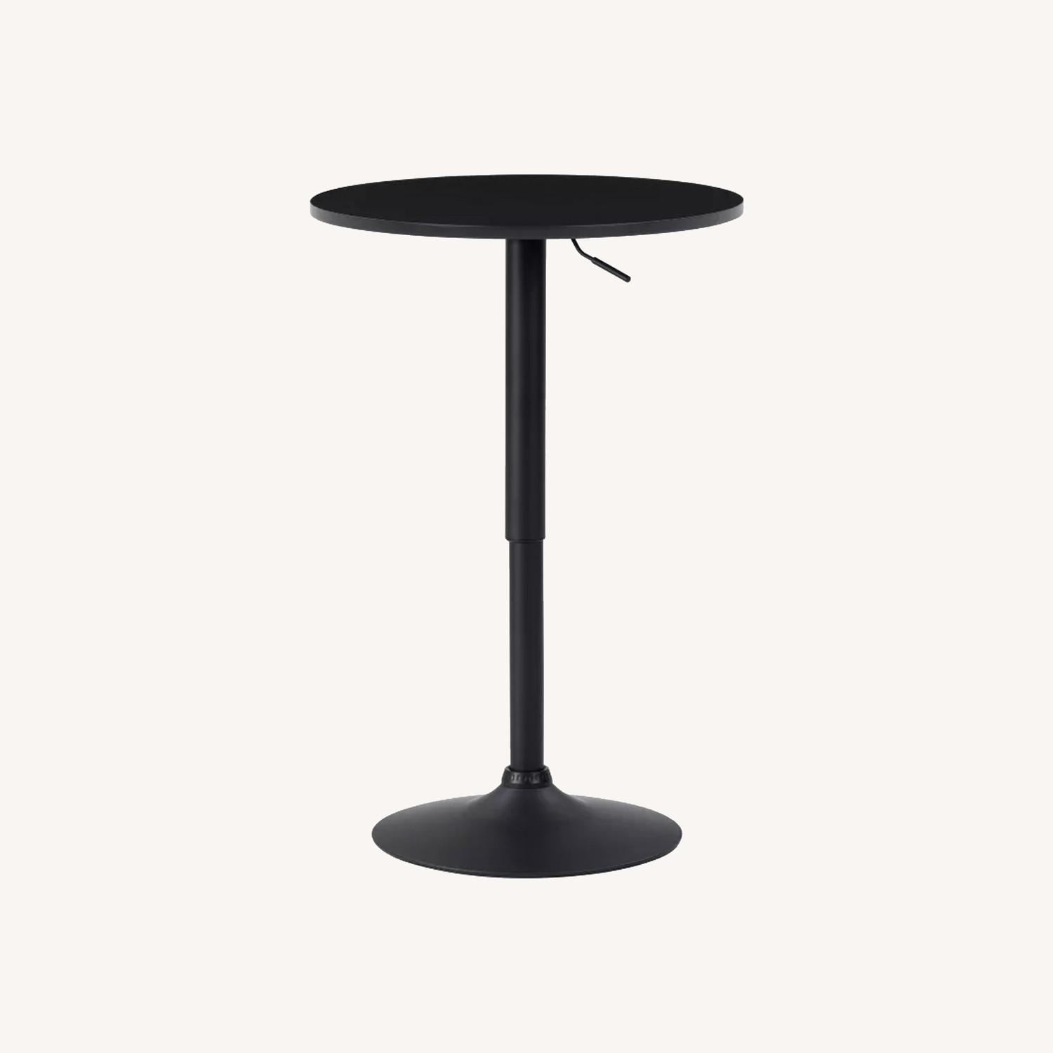 Seller's Notes:Round Adjustable Pedestal Dining Table Dark Black - CorLiving from Target Less than 1 year old. Great piece for small apartments - you can adjust the height from 25" to 35.75" Metal and wood composite. Swivels. Easy to adjust.