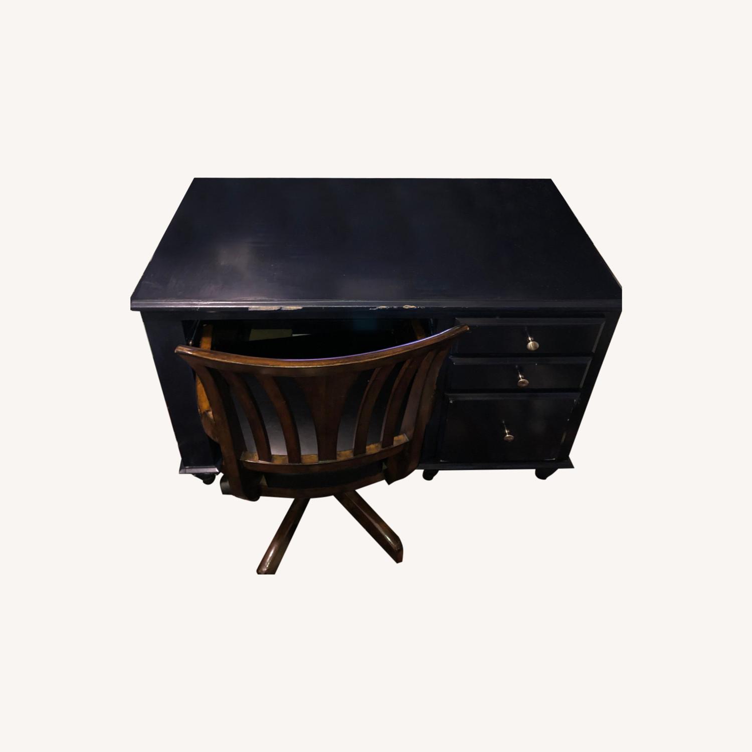 Seller's Notes:Bought this desk two years ago and hand painted it to the color I liked. We also fastened nice modern metal drawer handles. Its a great desk and I've loved working on it. I unfortunately cannot bring it with me when I move across country and as such am selling.