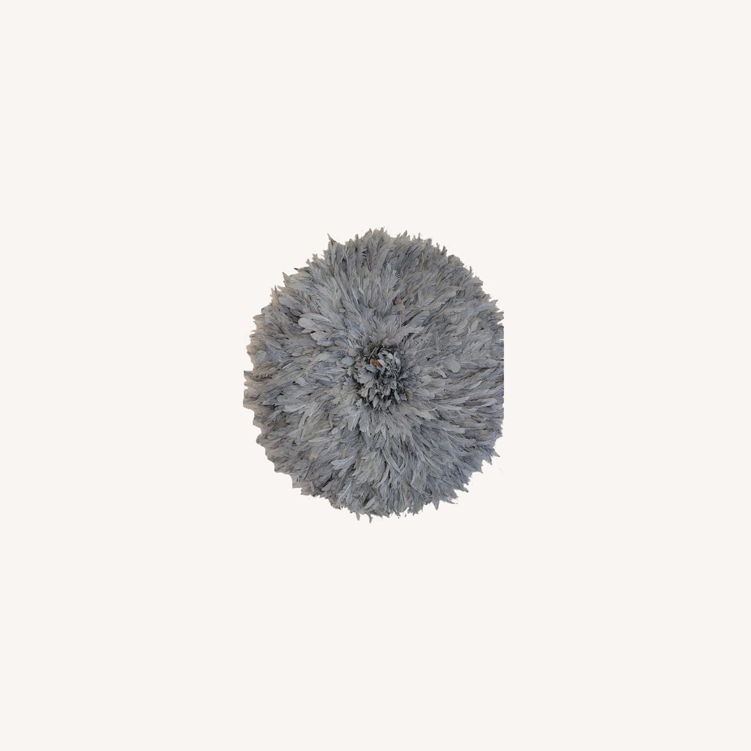 Seller's Notes:STATEMENT PIECE! African juju hats bring joy to a space. Traditionally worn by royal dancers during important ceremonies held by African chiefs. Folds neatly into a compact, drum shape that protects the feathers.