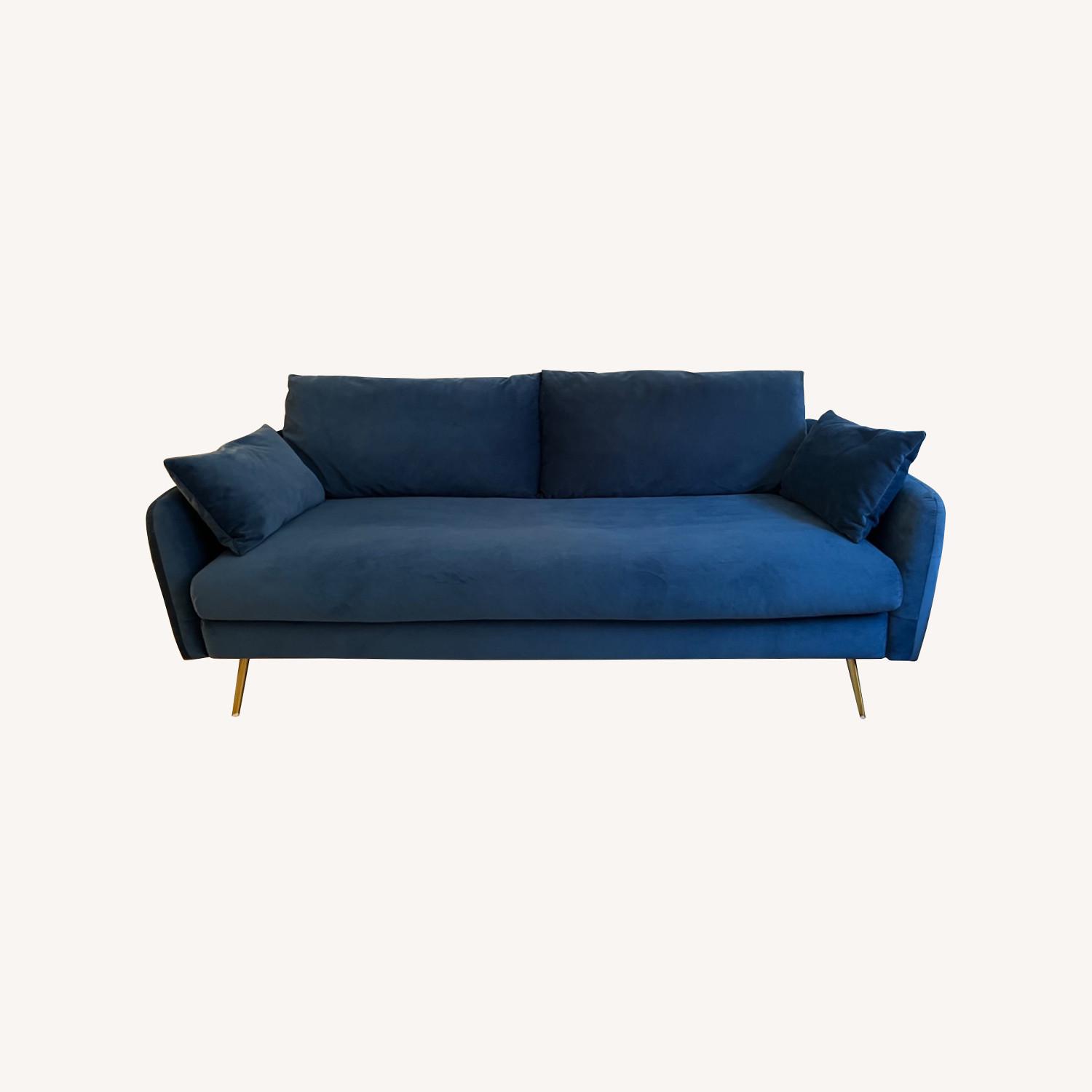Seller's Notes:Hey sofa lovers! This is an Albany Park Park Sofa in Blue Velvet that we bought in 2020 with tons of comfy life left in it! The blue velvet goes great with the gold pin legs, making it a comfy statement piece. Plus, all of the cushion covers are washable! But honestly, the best part about the couch is that it’s designed to be taken apart easily so you can move it piece by piece without breaking your back. All in all, the couch is 4 pieces minus the 4 cushions and 4 legs. It’s takes about 5 minutes to assemble (10-15 if you have to put the legs on). As you may have seen in the listing, our cat has been on the couch (like any happy lazy cat should be!) and has made a few scratches in the velvet. Due to the color of the sofa, they aren’t that noticeable but Albany Park has other covers available in different colors and materials should you want to switch them out. Happy to answer any questions or share any other pictures if needed!