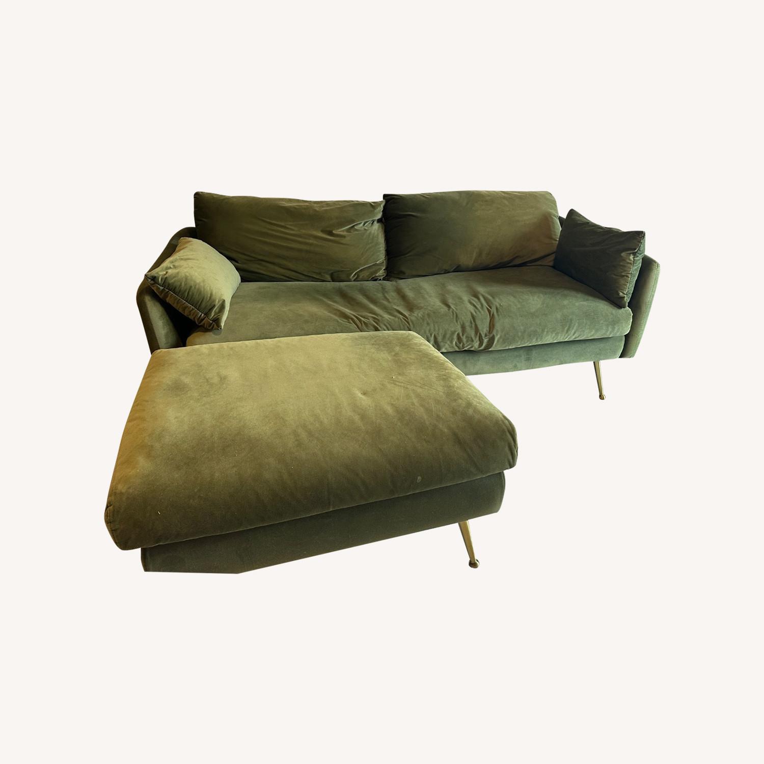 Albany Park Velvet Olive Green Couch w Matching Ottoman