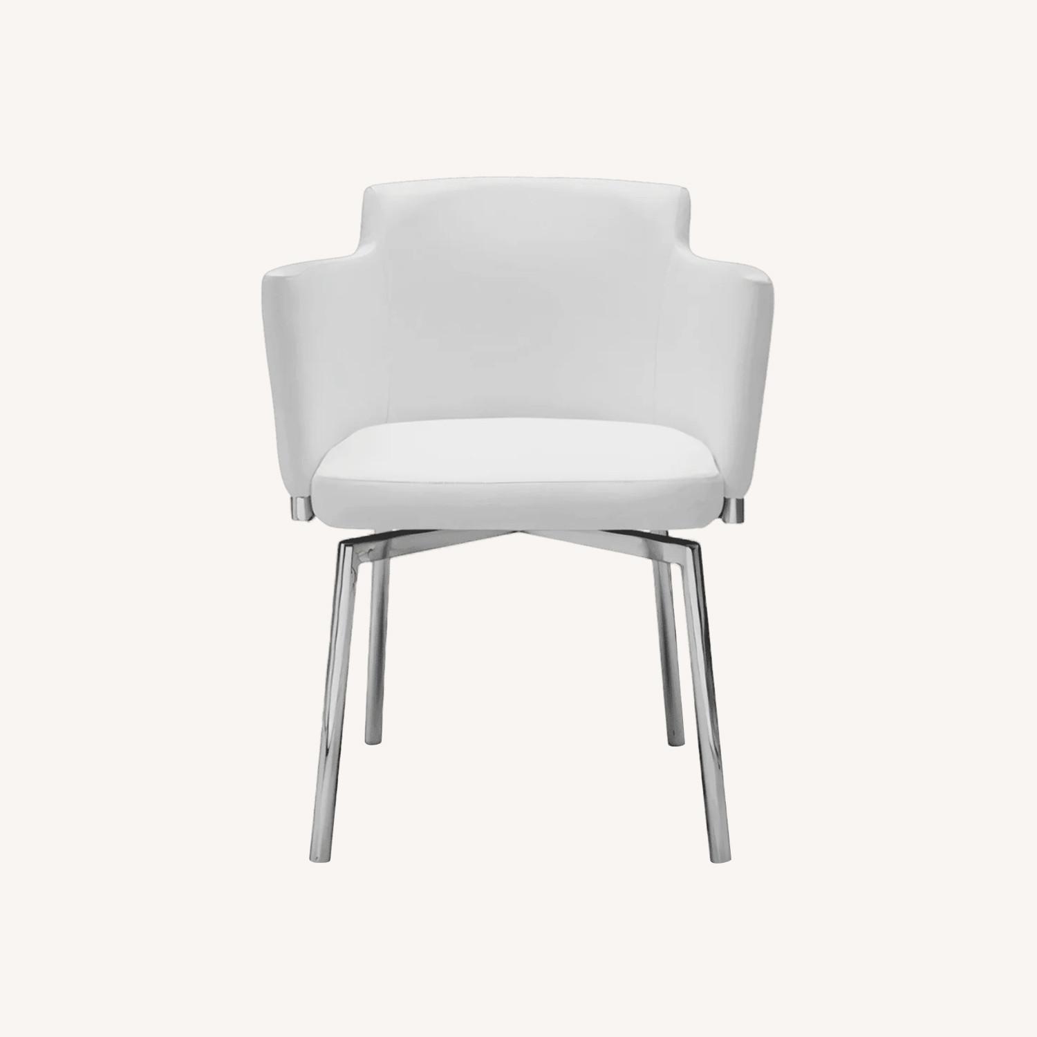 Seller's Notes:Sleek and modern, the Aldo Dining Chair by Modani features a clean white finish and chrome legs for a contemporary look. Gently used for less than two years and in excellent condition, it pairs perfectly with modern or minimalist dining spaces.