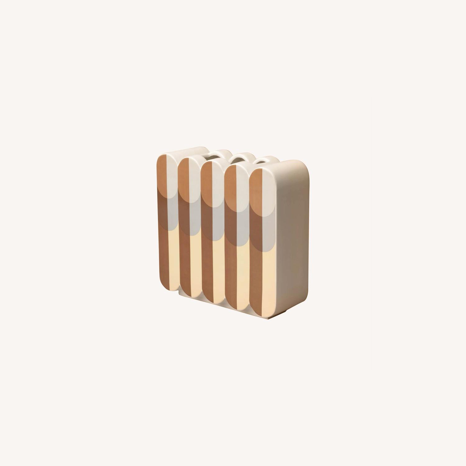 Seller's Notes:Beautiful vase, bought it early this year, it's been standing on a shelf in my apartment without being used even once, so essentially brand new! Bought it online for my new apartment after moving, but ended up pivoting away from retro style. Sold out on Alexis Bittar's site, so link no longer loads, but you will see it if you Google "Alexis Bittar Retro Memphis Short Ceramic Scalloped Vase". Also selling another vase from the same collection as this one, open to offering a bundle deal if both are bought!