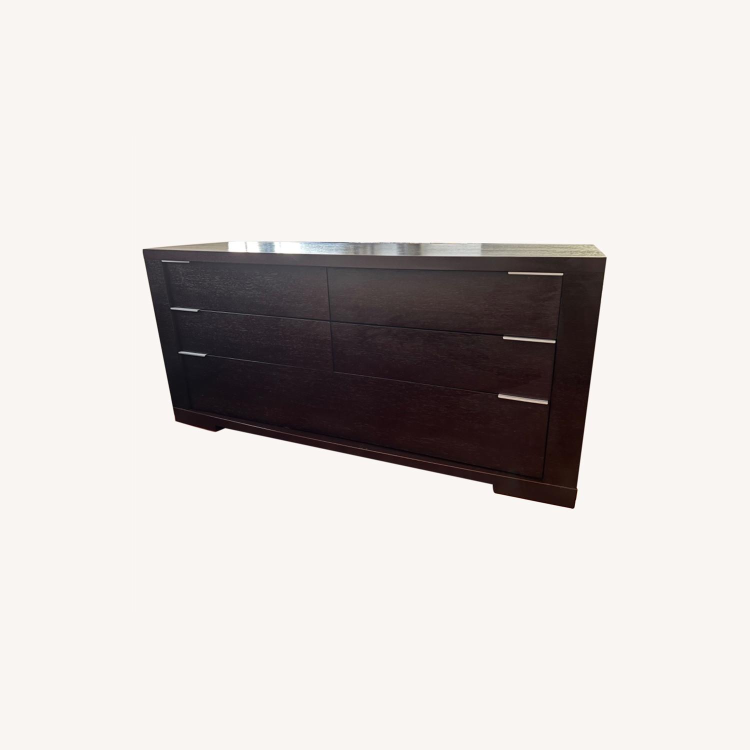 Seller's Notes:Alf Group Italian Modern Wood Dresser in Deep Espresso coloring with metallic hardware. Self Closing mechanism drawers with plenty of storage space and the quality guaranteed from this luxury Italian made brand. Item in like-new condition from a collection no longer available.
