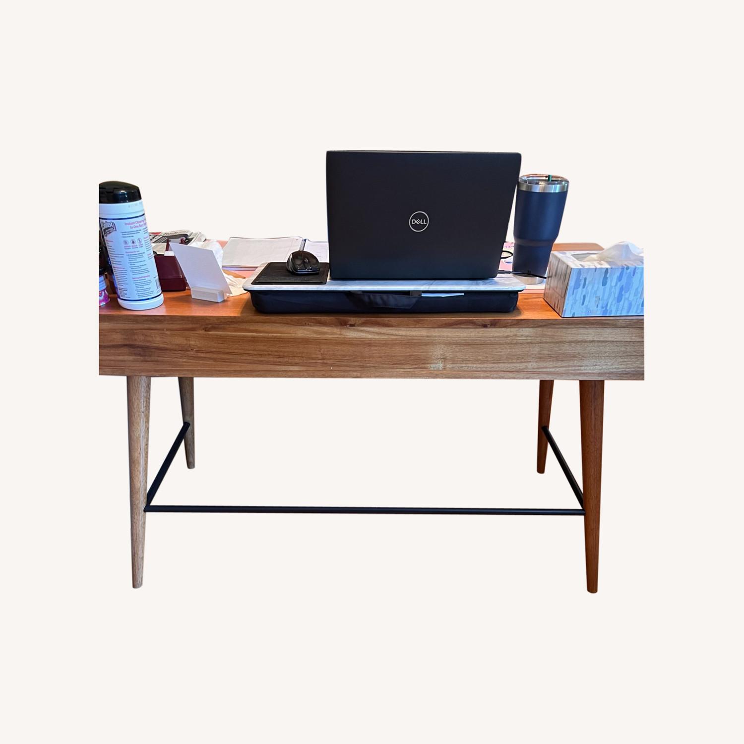 Seller's Notes:I LOVE this desk, but am moving cross country and not moving my furniture. This is similar in specs to the Williams desk, but the legs are slightly more tapered and there are dark rods at the bottom as you can see in my photos (vs the Williams desk in the link which is all wood). Sturdy, quality desk.