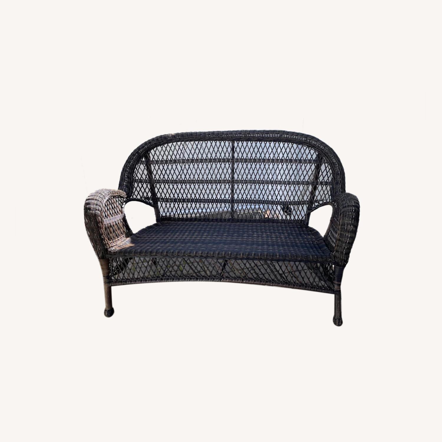 Seller's Notes:Modern all-weather wicker bench provides a comfortable seating arrangement for two. This bench complements most outdoor decors and is ideal for backyard, patio, deck, and garden. Water and fade resistant material ensures years of reliable use. Frame Material: Wicker/Rattan Cushion or Pillows Included: No Product Care: Hose off and wipe clean Adult Assembly Required: No 48" L x 36" H x 24" W Excellent condition Located on ground floor of house