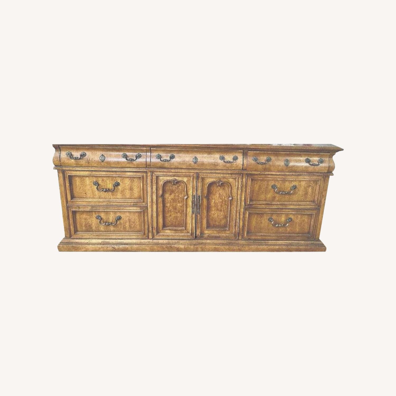 Seller's Notes:74" vintage all wood ( no flakeboard ) well taken care of dresser Matching armoir and 2 drawer end table also available.