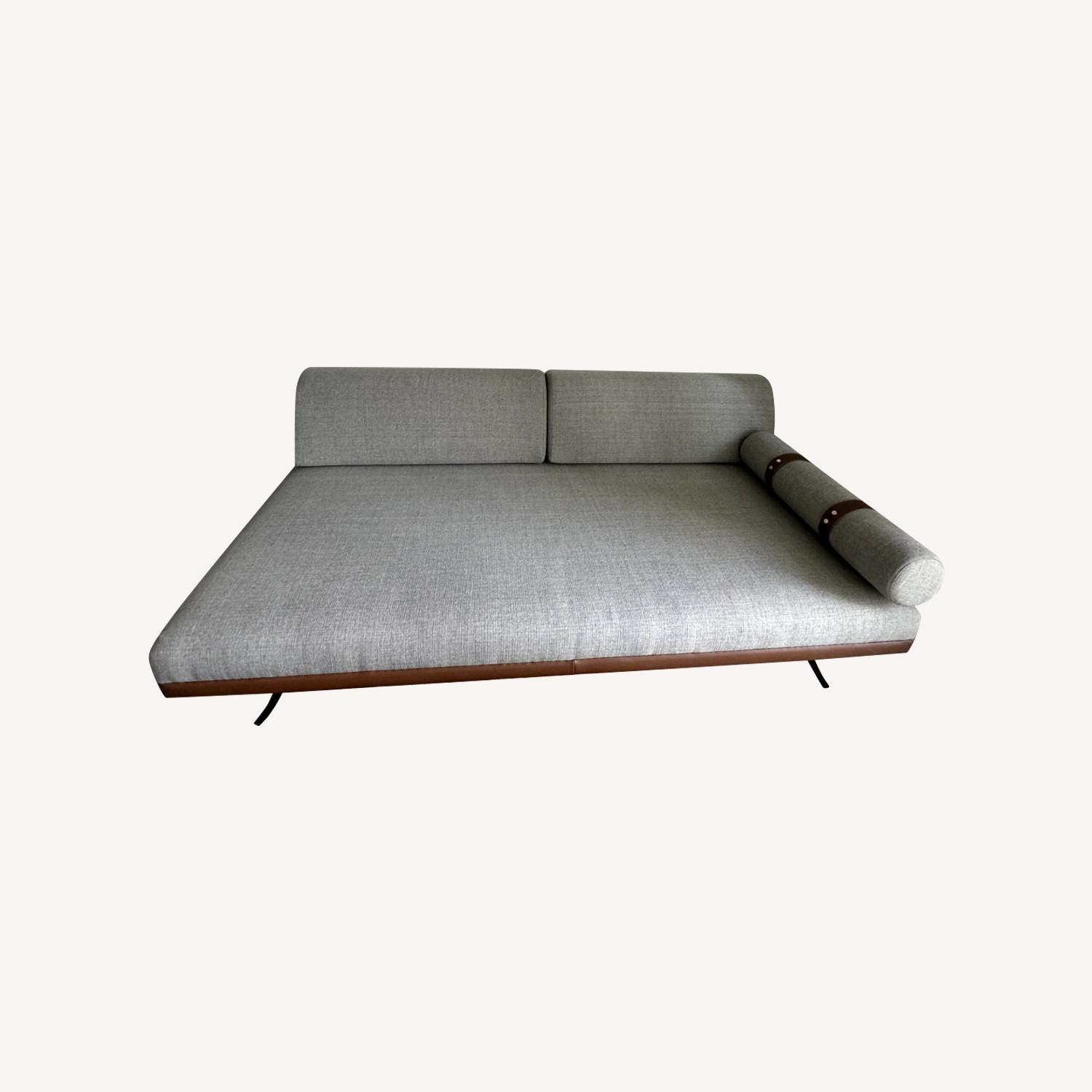 Seller's Notes:LIKE NEW - This day bed has been slept on once and sat on less than a dozen times. It has been sitting decoratively in my office/spare room for less than a year. Also, this daybed is in the color "venga light grey" which is out of stock on Allmodern.com and Wayfair.com. A gorgeous sleek sleeper with clean modern almost zen aesthetic and solid very construction. Works as a beautiful office sofa and doubles as a convenient day bed if you have guests! Just remove the back cushions to turn this asymmetrical sleeper sofa into a twin bed – it’s as easy as saying, “you can stay at my place.” Leather accents elevate a minimalist modern silhouette wrapped in performance upholstery. Its bolster pillow can be secured at either end. I also have a very comfortable bedding purchased specifically for this daybed: 1) 3 inch foam topper 2) padded mattress cover/protector 3) Brooklinen twin sheet set (luxe sateen white with a very fine stripe detail includes fitted and flat sheet) 4) hypoallergenic alternative down comforter 5) White linen duvet (Total cost about $600)