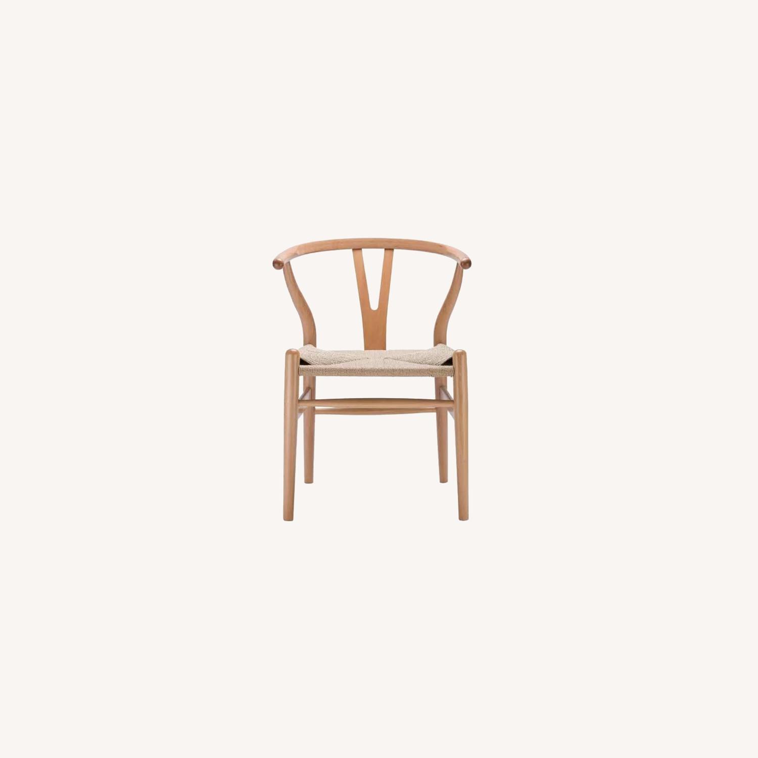Seller's Notes:Midcentury modern wishbone look chairs - pairs with my oval tulip dining table. Bought this just one year ago. Moving out sale. In fantastic condition. Small bump on one of the chairs.