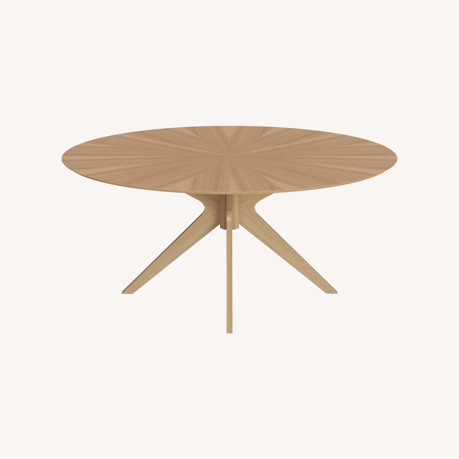 A starburst design + boomerang legs launch this pedestal dining table to statement-making territory. It's made from kiln-dried wood and delivers a dynamic silhouette inspired by space-age mid-century style. The oval table top seats up to six for casual meals and special occasions.