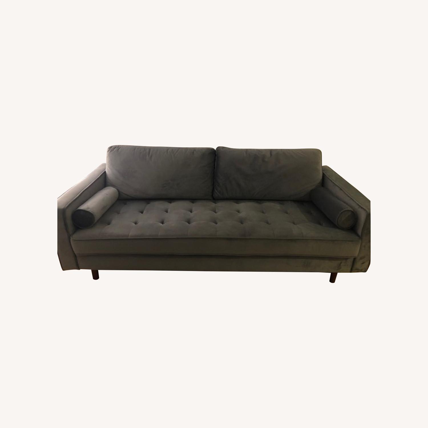 Seller's Notes:Platinum grey velvet sofa in boho-chic style. One and half year old, in great condition, no wear or tear details.