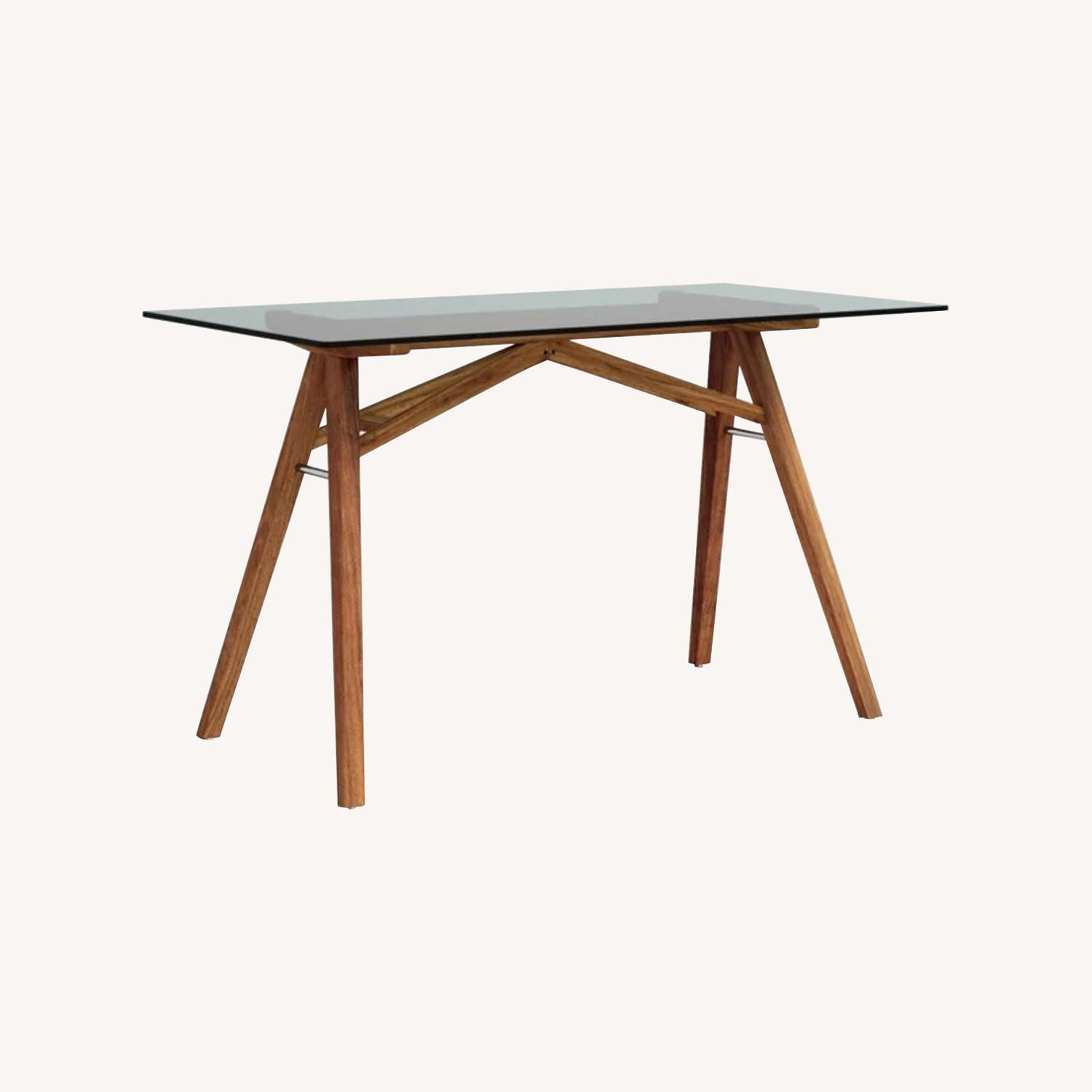 AllModern Glass Top Solid Wood Base Writing Desk
