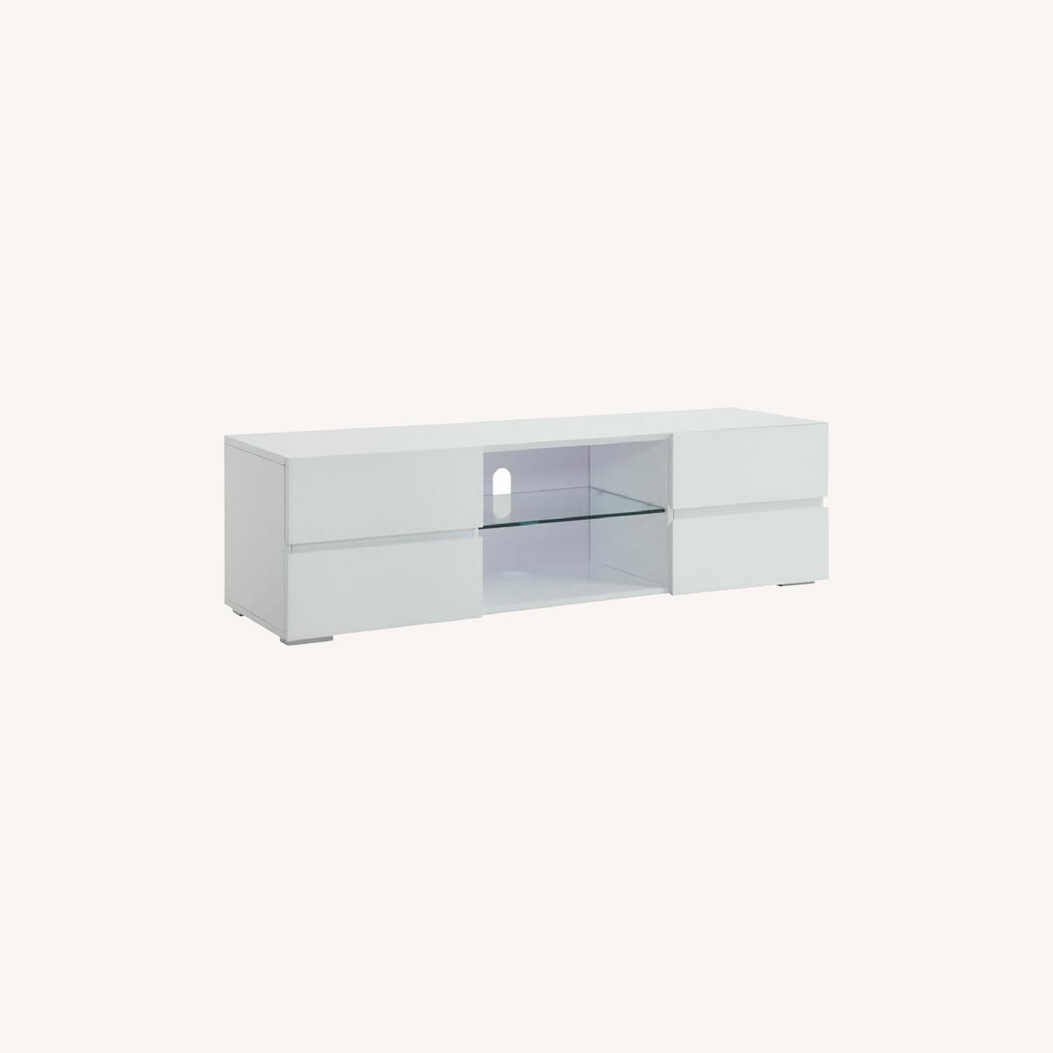Seller's Notes:Great TV stand recently purchased but does not fit in my apartment as I had wished. Some minor wear and tear from the previous owner (paint chips) but totally worth the price of the piece. 4 Drawers that are perfect for storage and exposed 2 shelves.