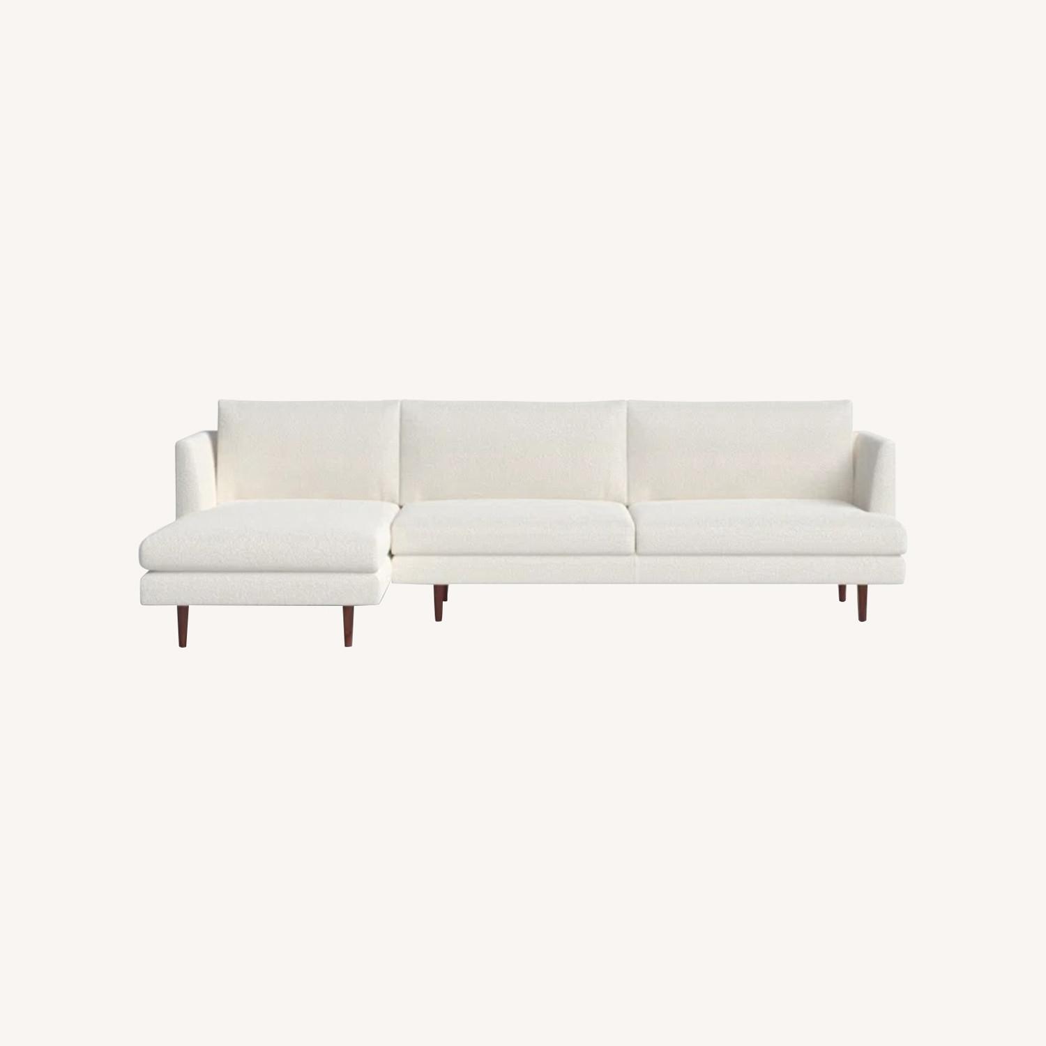 Seller's Notes:Great condition sectional Sofa from AllMordern. Left hand chaise. 1 year old, no smoking, no pets household. Slight stain on the left from the movers Removable cushion covers. Cushion covers will come dry cleaned
