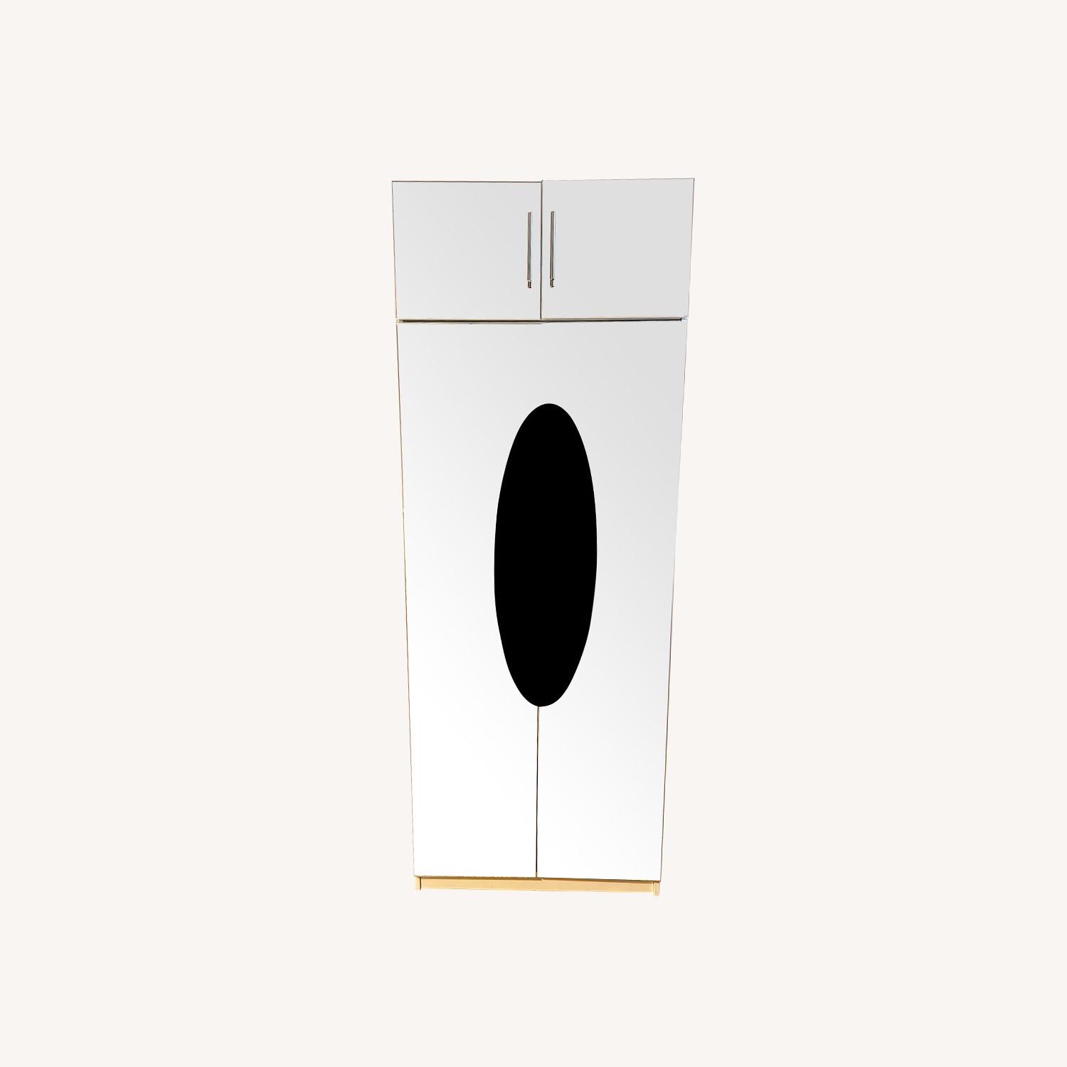 Seller's Notes:White matte wardrobe closet with rod chrome handles with storage topper. Sort of an 80s/90s vibe, a nice alternative to your basic Ikea closet. Can still be customized with shelves if you reach out to Contempo. Only selling because I'm moving rooms and have a real closet now!