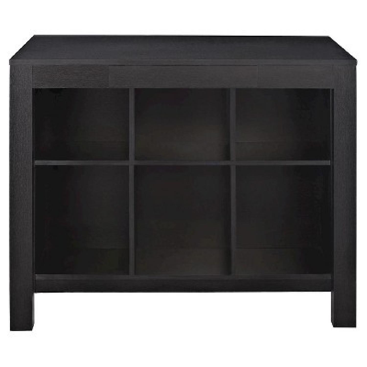Seller's Notes:Elegant and compact desk with six storage cubbies on the base. This desk is perfect for any room and offers great opportunities to store books or other essentials. It's in good condition and features minimal blemishes. The main legs are a little wobbly, but that can be fixed with tighter screws.