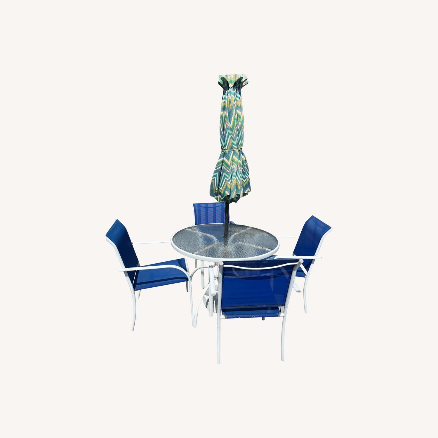 Aluminum/Glass Table with 4 Chairs and Umbrella