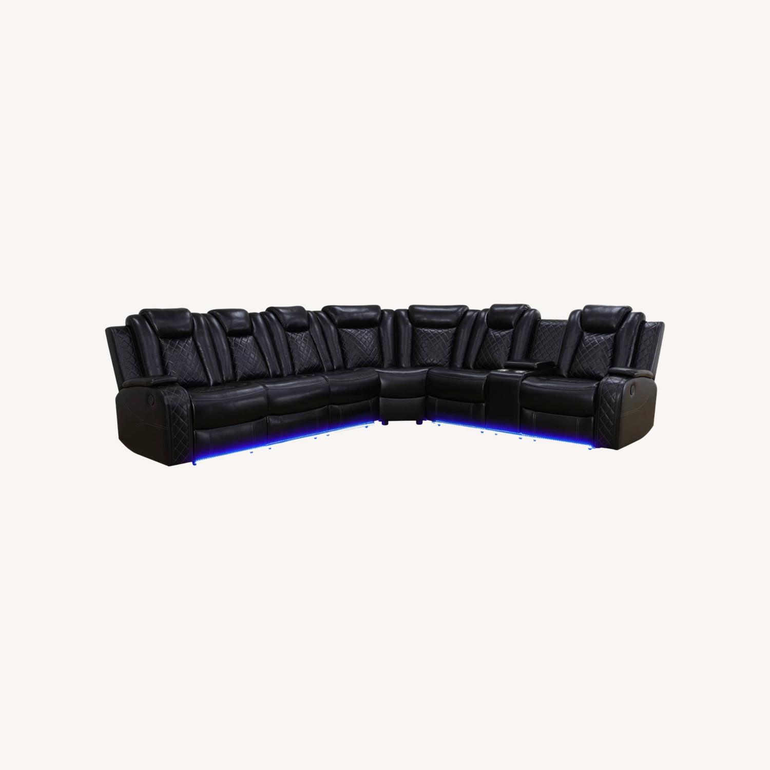 Seller's Notes:Brand New Black Leather Power Recliner Sectional Sofa with Wireless Charge & Led lights.