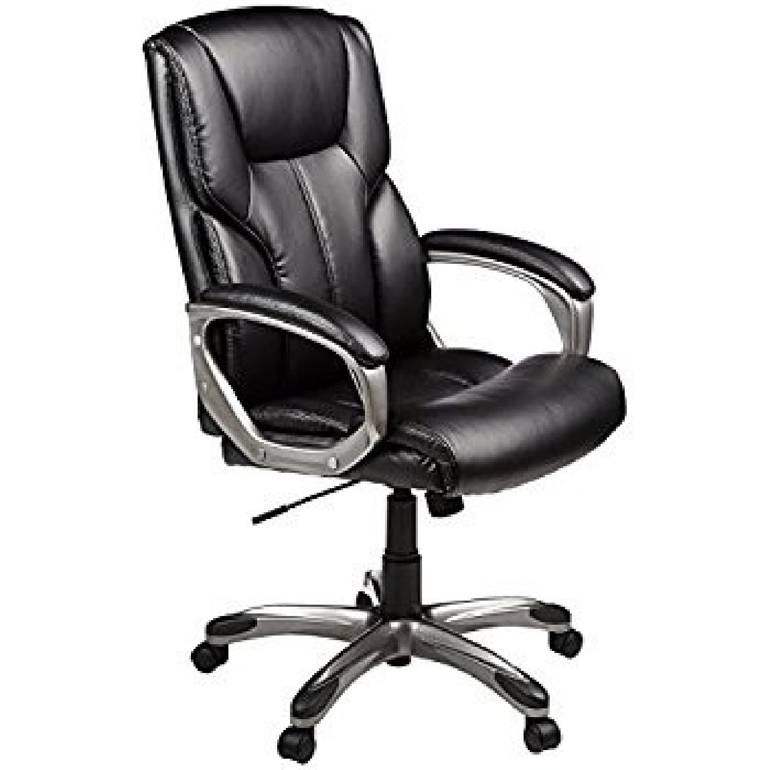 Seller's Notes:Rarely used executive chair with black leather, padded seat and back Selling only because I'm moving w/no space for desk