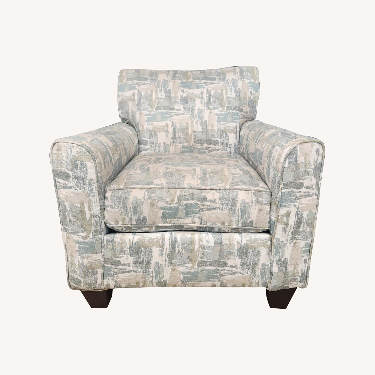 Seller's Notes:Stylish unique accent sofa chair. Width: 33" (83.8 cm) Depth: 37" (94 cm) Height: 36" (91.4 cm) Weight: 58 lb (26.1 kg) A little worn- some discoloration- but no rips, stains or tears.