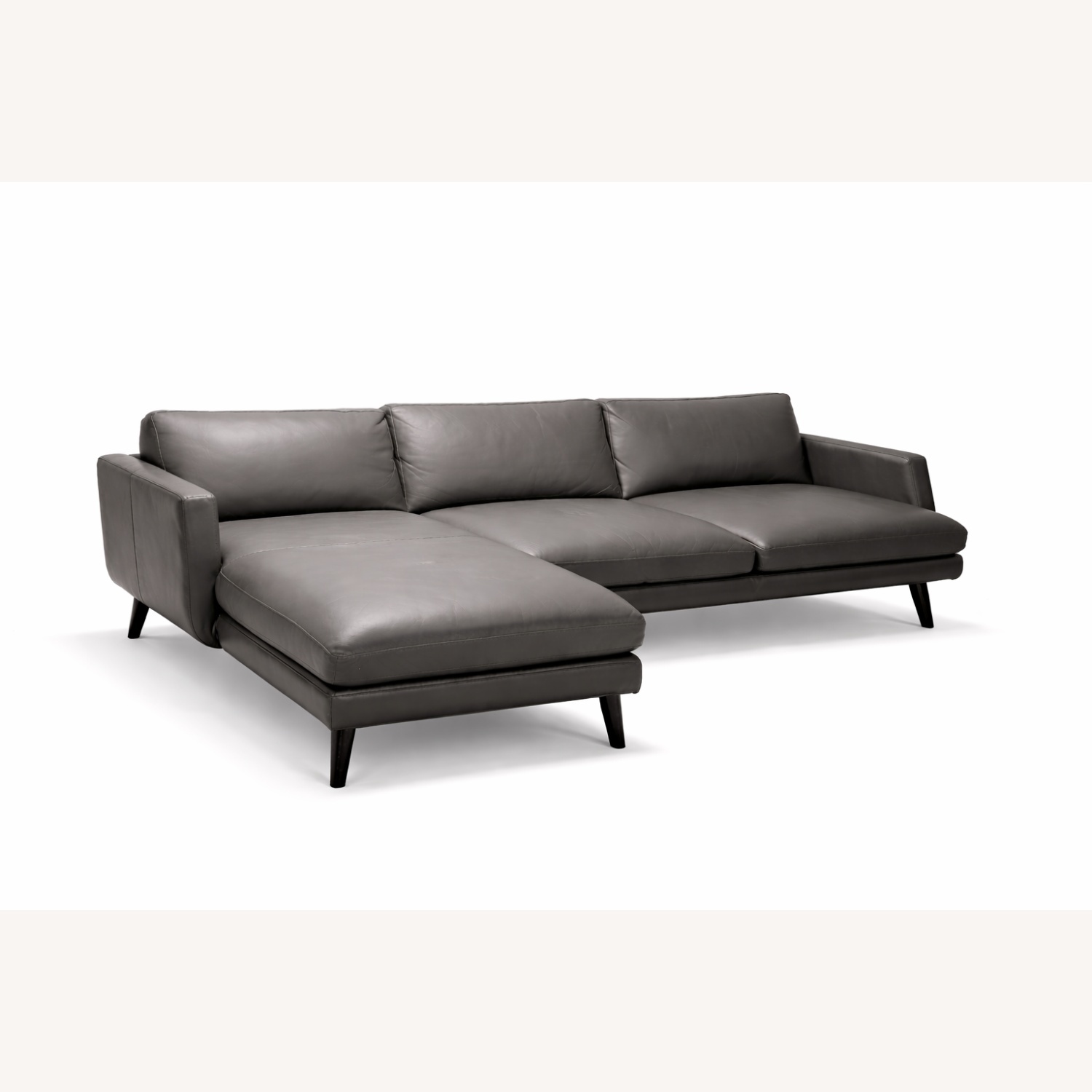 Seller's Notes:Extremely well made custom grey leather sofa from reputable American Leather brand. Individual sections unlatch making it easy to move. Seat depth is exceptional and almost no wear.