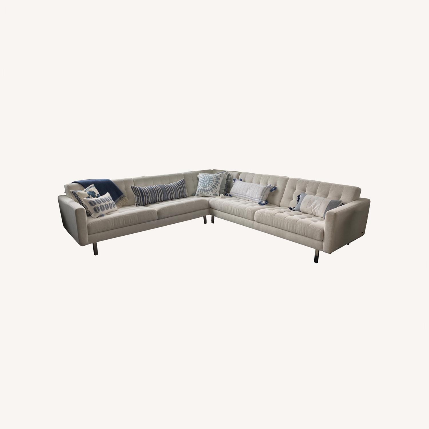 Seller's Notes:Beautiful two piece sectional in cream color fabric