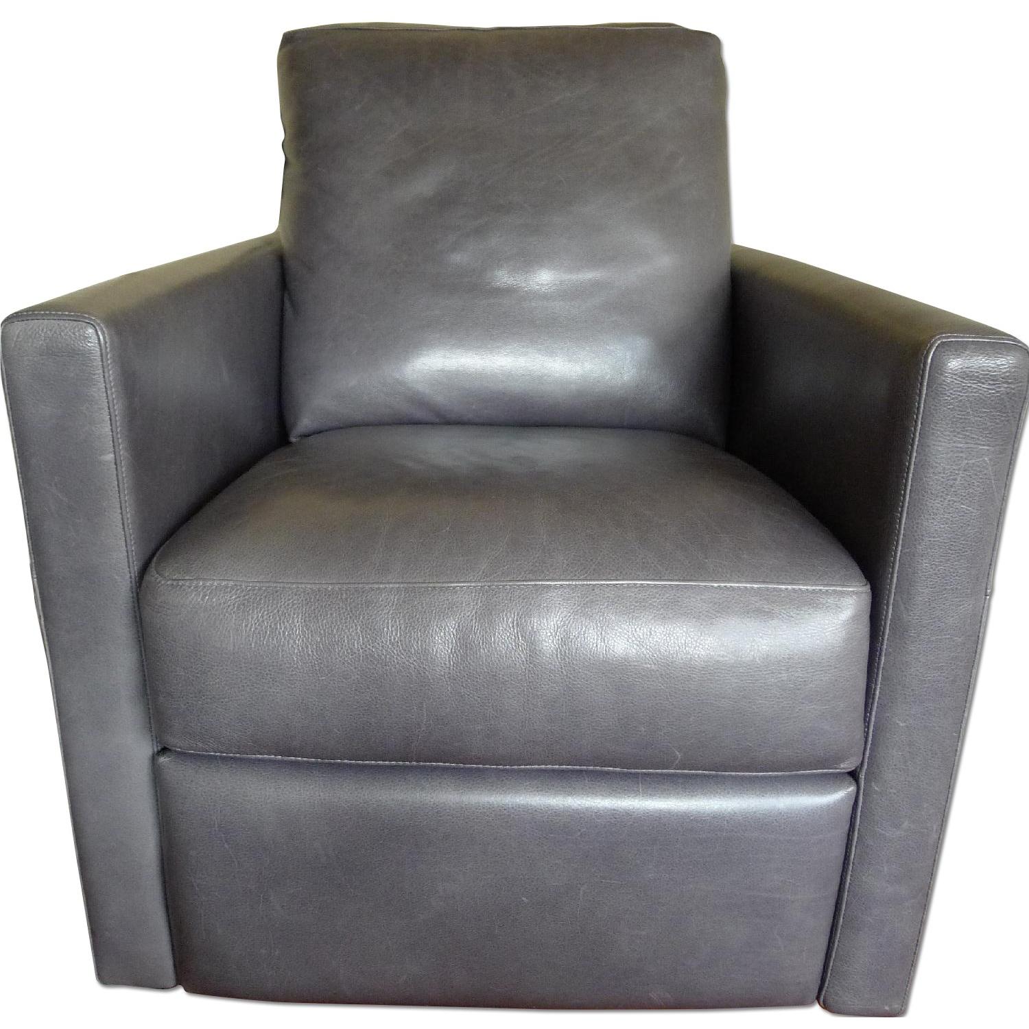 Seller's Notes:American Leather Swivel Recliner - Louisa Collection - F Grade Leather Beautiful color of smokey blue. Almost like a grey. Elegant - Slim Lines - Narrow Arms - Modern - High Quality Home is a clean, pet and smoke free environment. Item was not sat in more than 10 times and never for longer than a few minutes. We are selling because item was not being used and we are redecorating and need the spot where the chair is currently placed. 30W x 39D x 36H Grade: Haven Color: Havana Smoke Code HAV5007