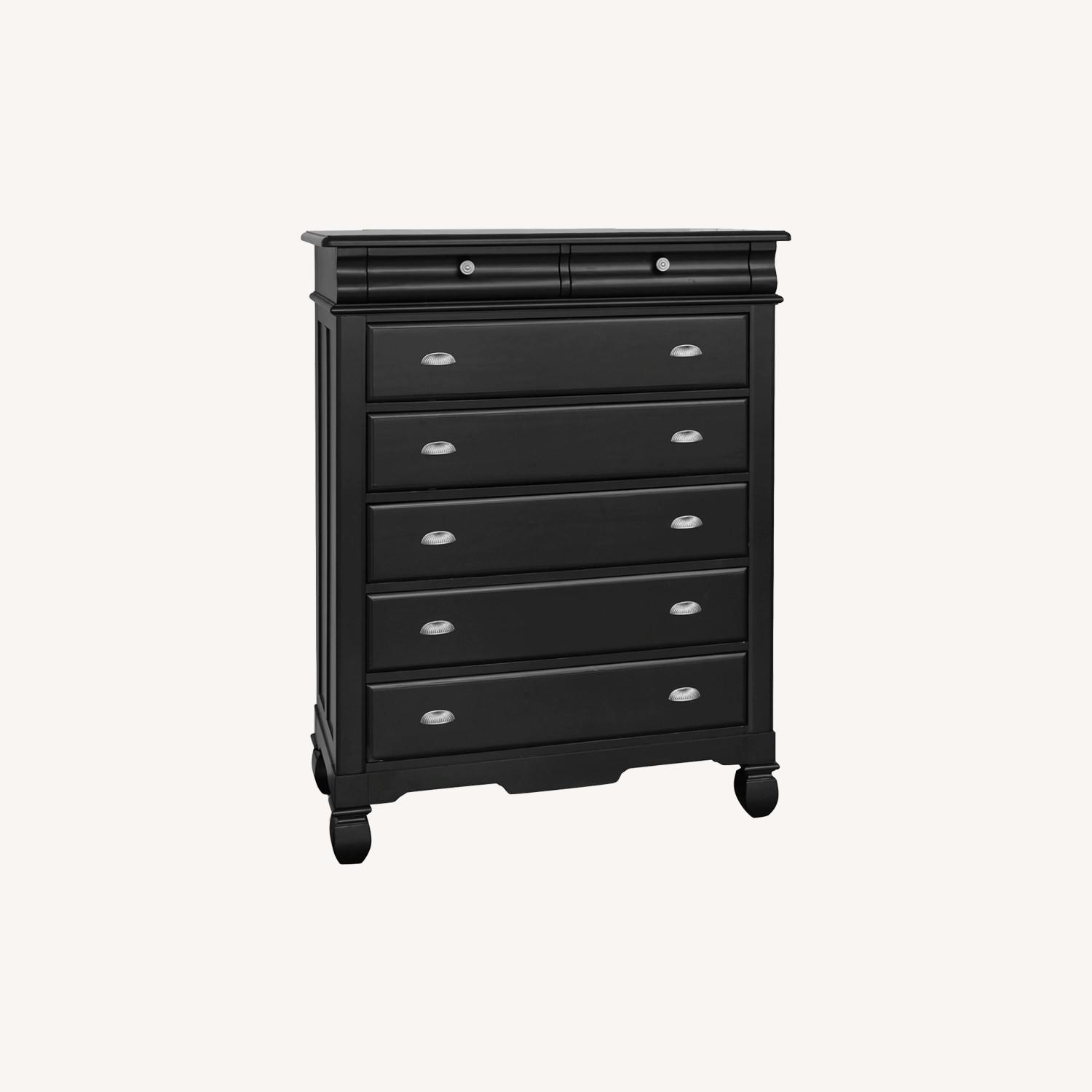 Seller's Notes:Matte Black 5-Drawer dresser from American Signature's Plantation Cove collection. Dresser has two top velvet lined drawers and a hidden velvet lined accessories drawer hidden within the middle larger dresser drawer. Item have regular wear and all drawers function smoothly. I am also selling the matching night stand that goes with this dresser. Please see my seller's profile.