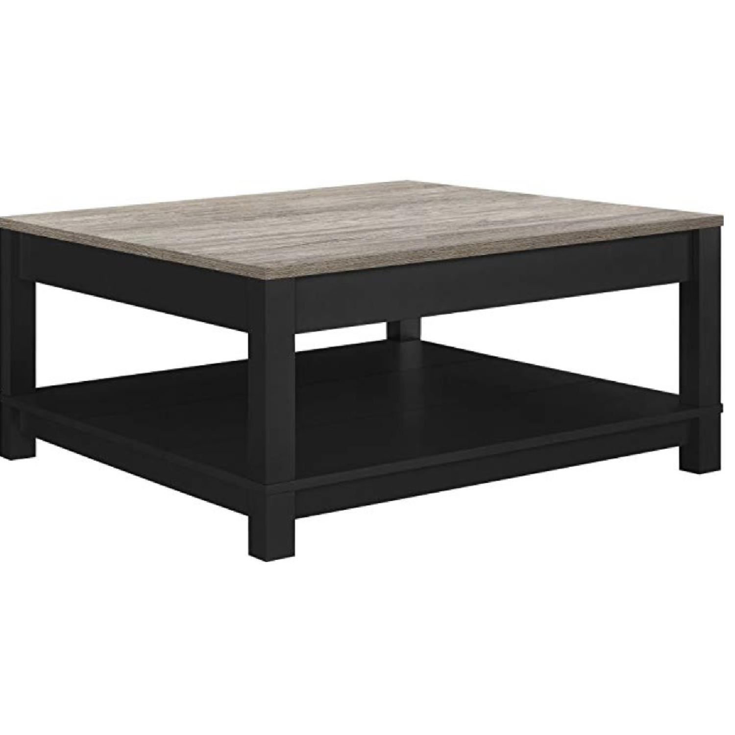Seller's Notes:The simple, yet elegant design of the Altra Carver Coffee Table makes it the center piece of your living room. This item is beautiful and functional. This Coffee Table is perfect for showcasing your decorative items or to keep all your magazines and remotes in 1 place. The Altra Coffee Table features a matte black finish with a distressed wood grain top that creates a refined, clean look in your home. Altra Carver Coffee Table brings chic style to your living room or family room This item is perfect for displaying decorative accessories or for keeping remotes and magazines in 1 place Bottom shelf can be used for additional decorating or storage space. Clean and Care- Dust and wipe with a dry cloth and if needed, a damp cloth may be used sparingly Coffee Table is finished on all sides for versatile placement in your room Matte black paint with distressed wood grain accents bring charm and sophistication to any room