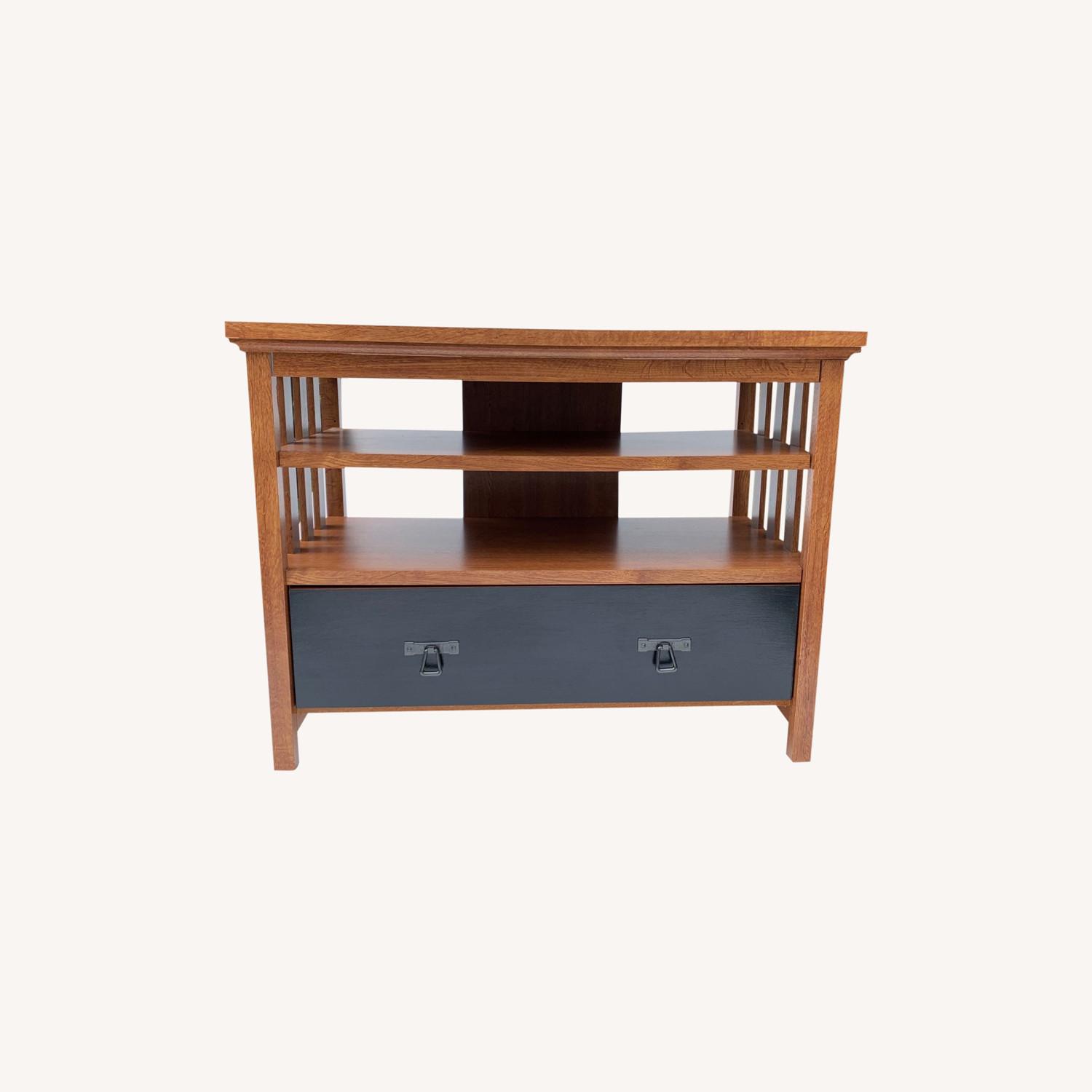 Seller's Notes:Pre-owned Amish Mission style TV/media stand provides space to store DVR, DVD player, game console, DVDs, and more to two open shelves and one drawer. Details like solid square legs, mission-style slats add character to the piece and your living room. Excellent condition like-new. Local pick-up available