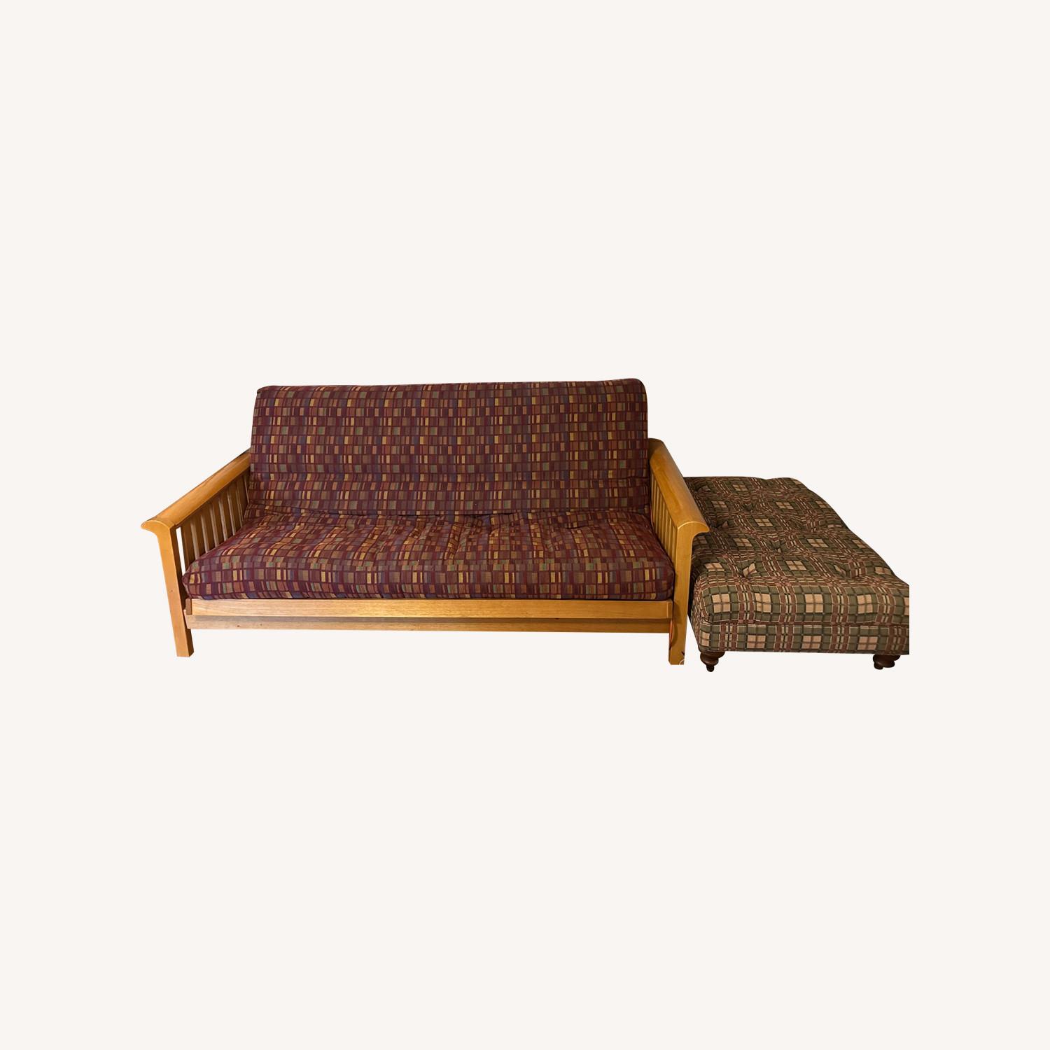 Amish Oak Wood Futon Couch Bed & Ottoman