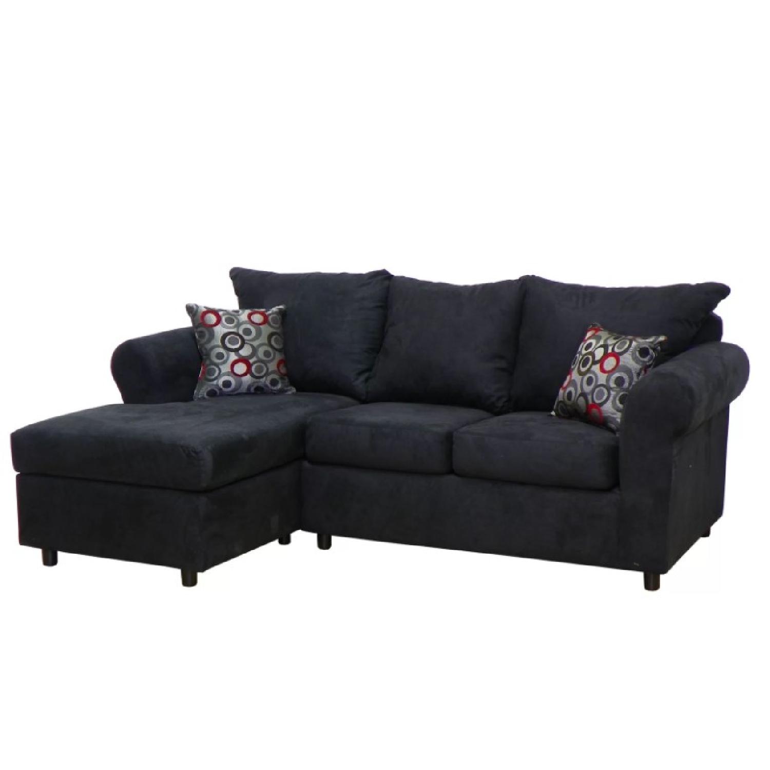 Seller's Notes:This lightly used black sectional couch looks and feels good as new. The sectional is left facing and micro suede. Comes with two matching throw pillows. Very comfy!