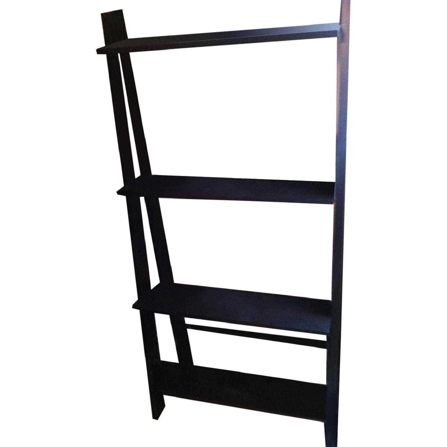 Seller's Notes:Black angled bookcase is a stylish addition to any room. Less than two years old & in excellent condition. Does not come with books or extras pictured :)