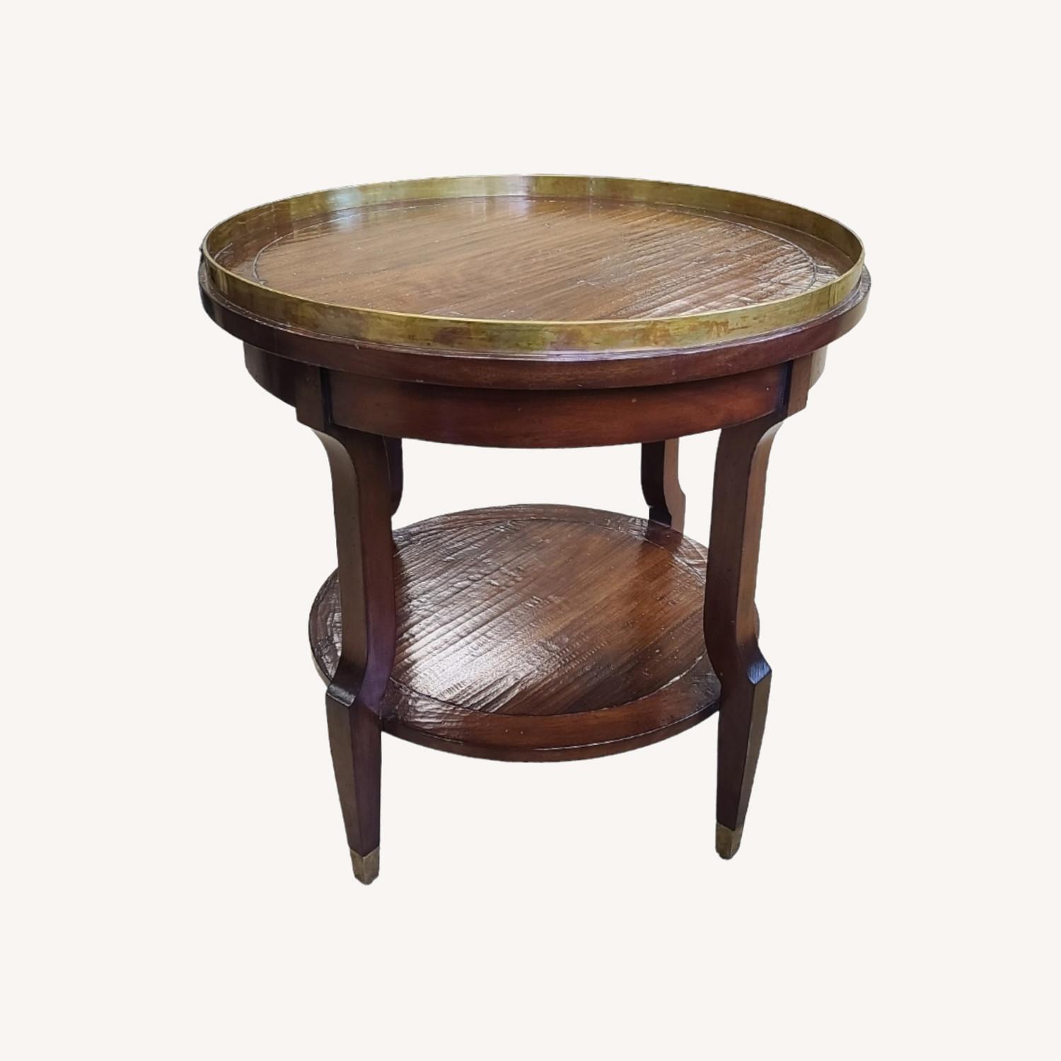 Seller's Notes:Item Name: Modern American Chairside Table From Brass Gallery Collection Item #: 590-00-300 Item Description: Mahogany solids, spoke shaven walnut veneers