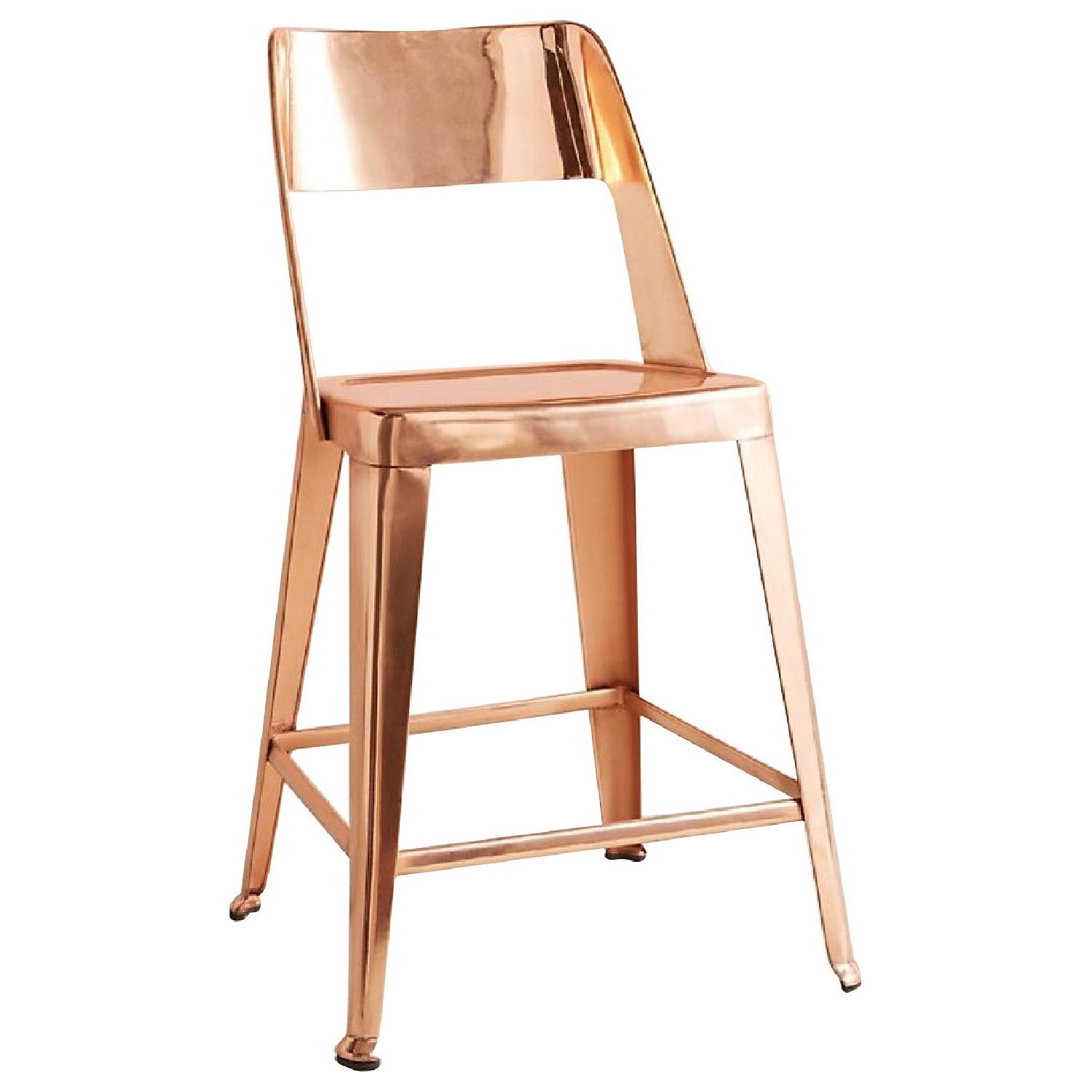 Seller's Notes:Brand new Spenser Brass Counter Stools by Anthropologie. Have only had for about a week and in perfect condition. GORGEOUS and comfy! Details... Inspired by a piece discovered in a Parisian flea market, these classic bistro stools are stunning and comfortable. Dimensions are: 38.25"H, 22.5"W, 18.25"D Seat: 24.5"H, 18.25"D 9.75 " under seat clearance