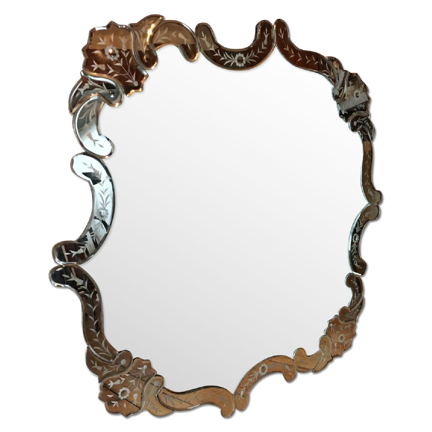 Seller's Notes:Trimmed in rounded fragments of glass etched with a floral motif. Mounting wire at back. Glass. 30"L, 30"W. Imported.