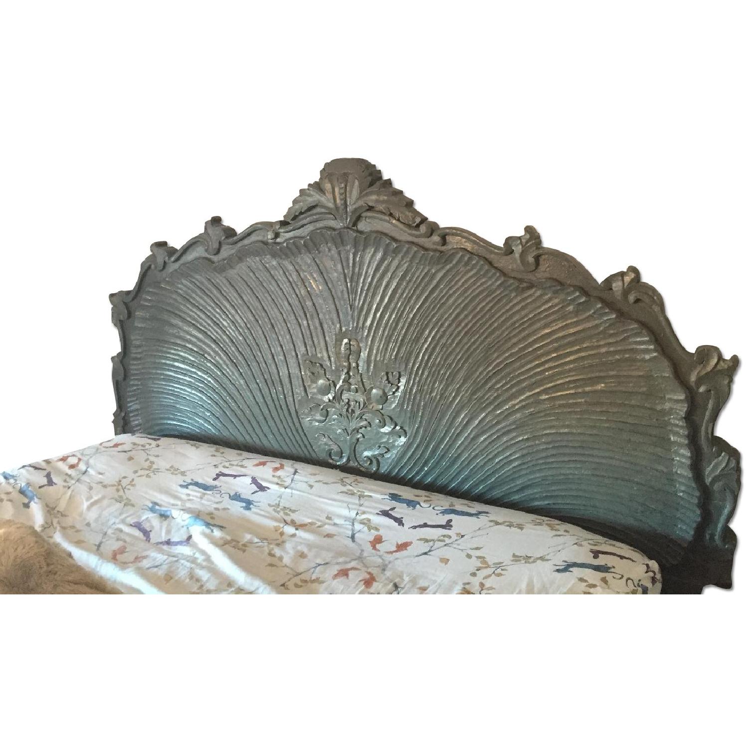 Anthropologie Grey/Blue Wood Queen Size Bed Frame
