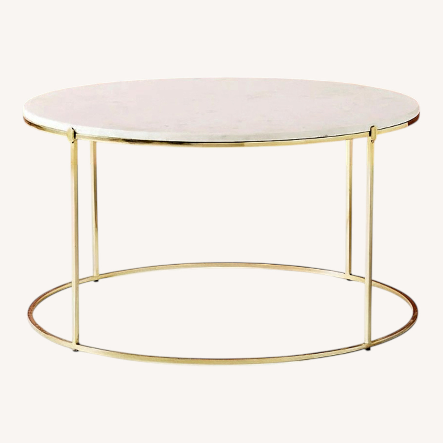 Seller's Notes:Stunning Anthropologie marble and brass coffee table. The top is a beautiful solid piece of marble which rests on a sturdy brass base. We purchased this brand new from Anthropologie about 6 years ago for about $900 ($700 + $200 shipping + taxes), but we got a new couch and changed up our decor, so it was time to find it a new home. This table is extremely durable, and has stayed in amazing condition through two moves.