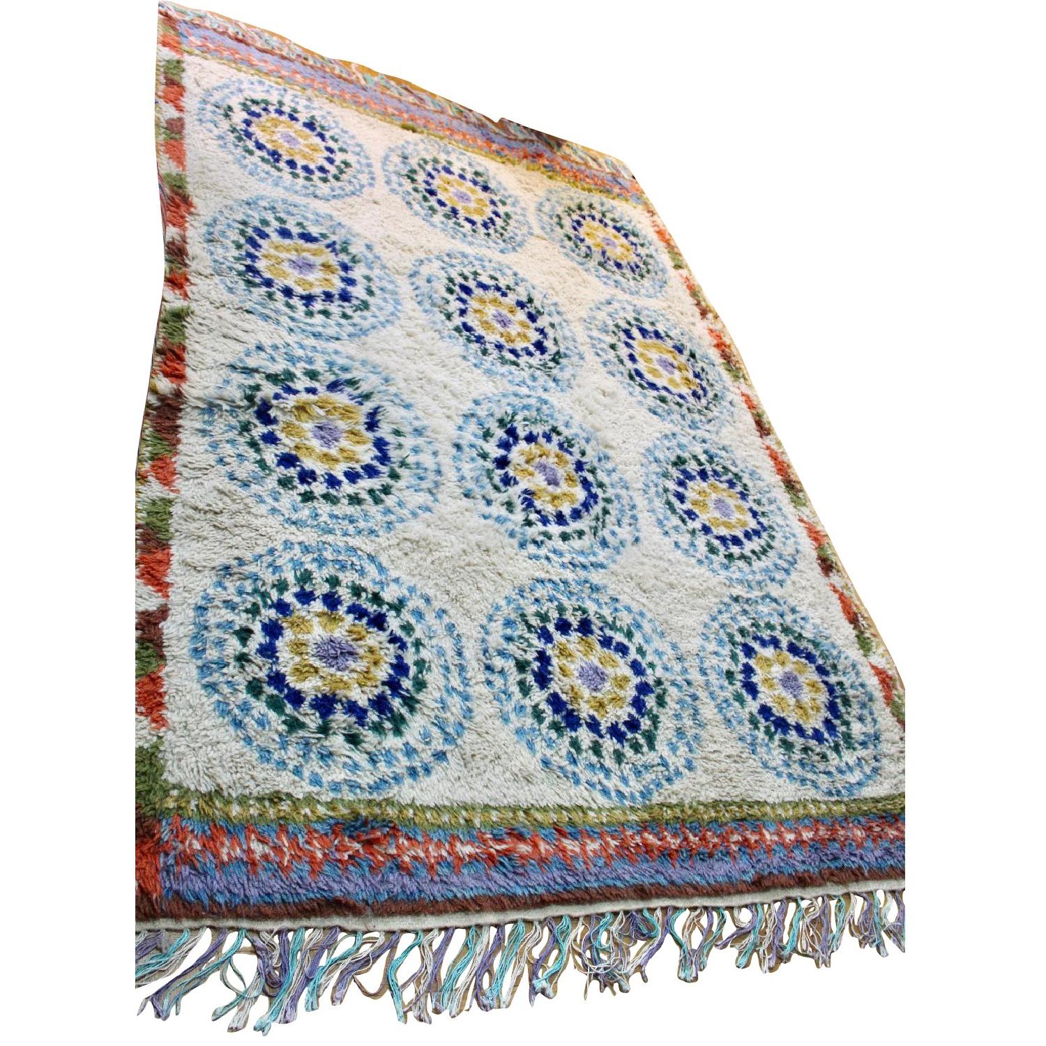 Seller's Notes:Thick and colorful shag area rug! I've had it for a while and am ready for something new. Excellent condition - no stains - no pets - no smoke. it truly goes with everything and i get a lot of compliments. Main colors: sky blue, orange, royal blue, gold, lilac, rust, cream