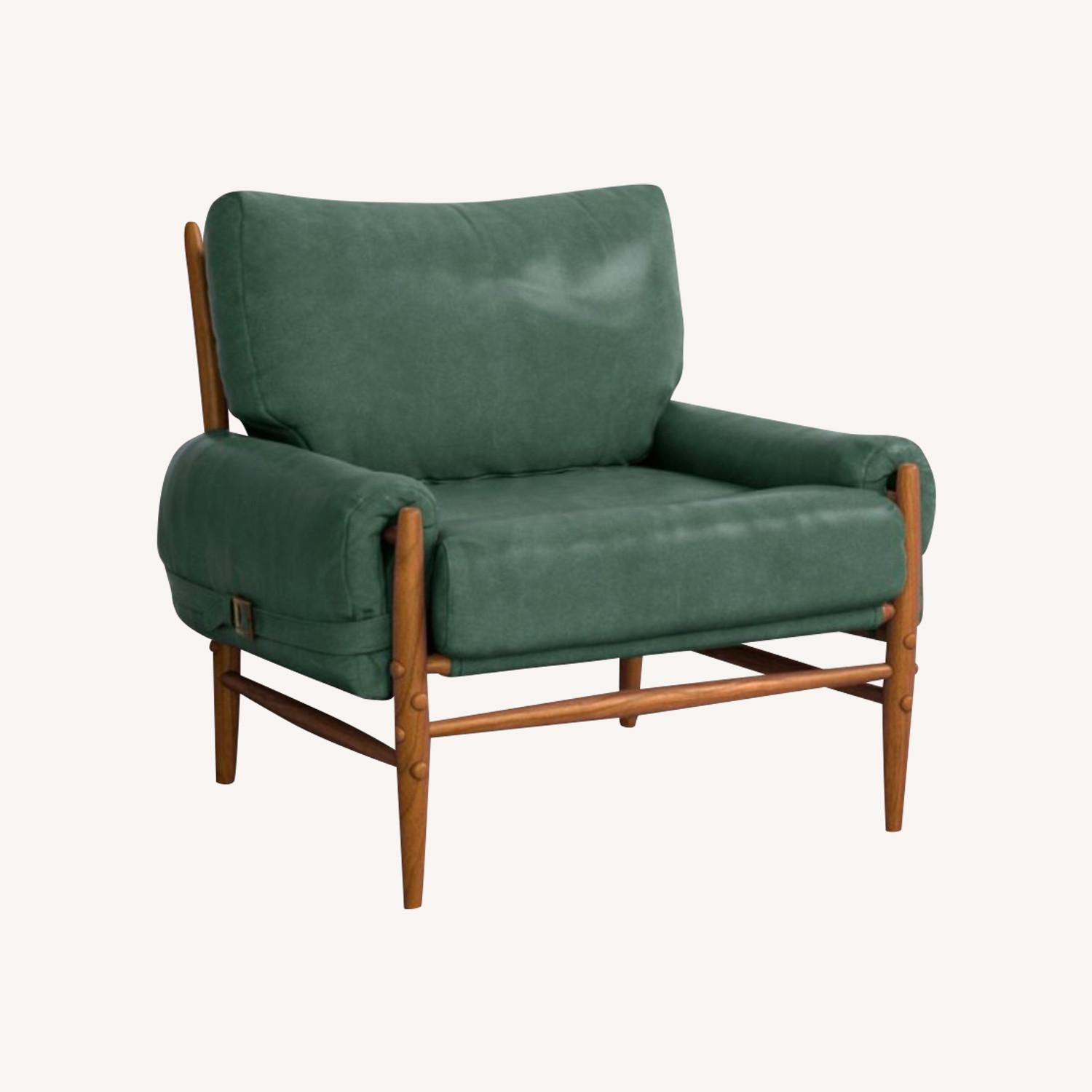 Seller's Notes:This turquoise leather chair is super comfortable and cozy while adding a relaxing and elegant pop of color to a neutral space. It is the Anthropolgie Rhys Chair in Mediterranean leather. It been been very lightly used and ready for its new home.