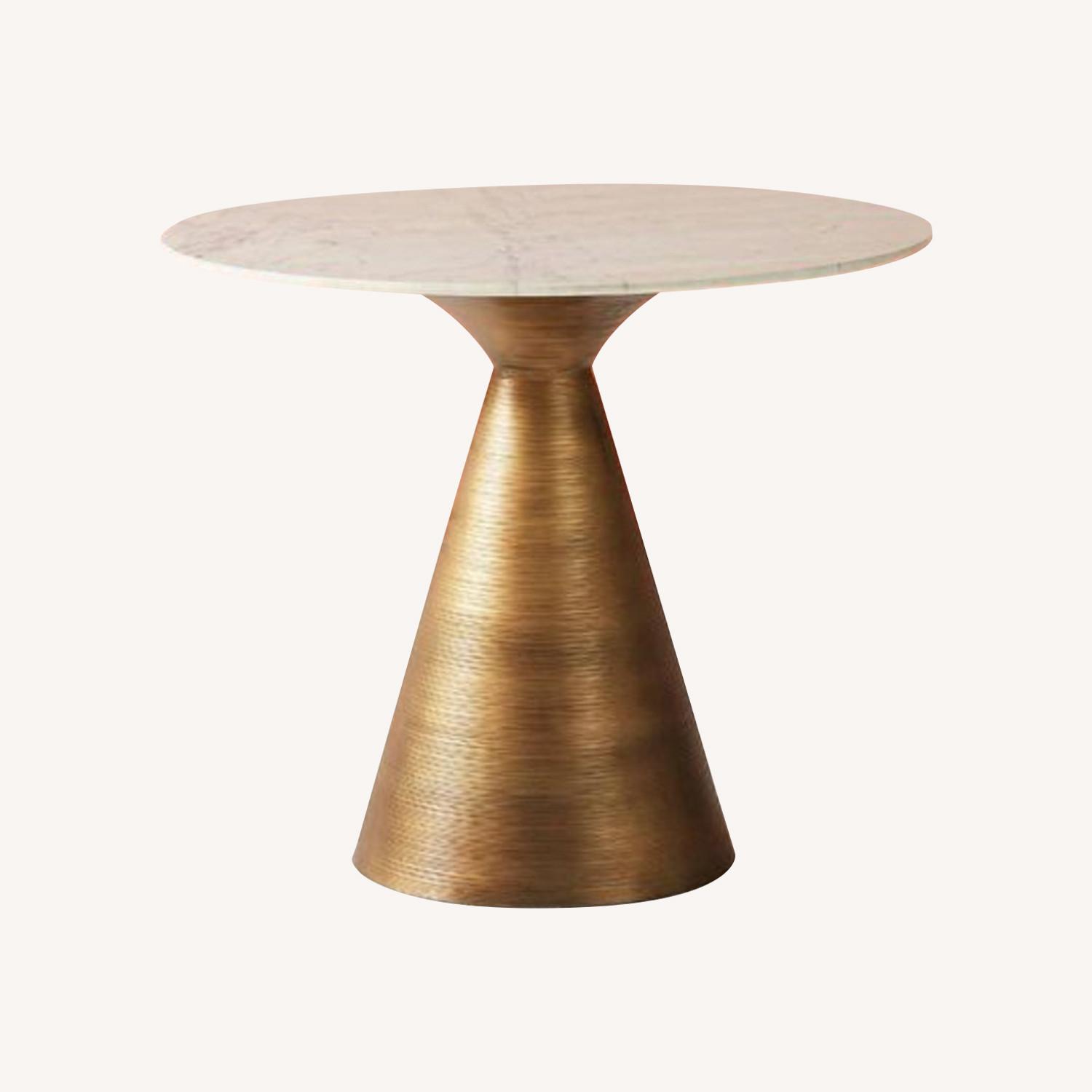 Seller's Notes:Sold Out Everywhere! Very Elegant Anthropologie Vivien Bistro Table in White Marble with a Brass Base. Beautiful, discontinued piece. Only Selling because I am moving to a smaller apartment.