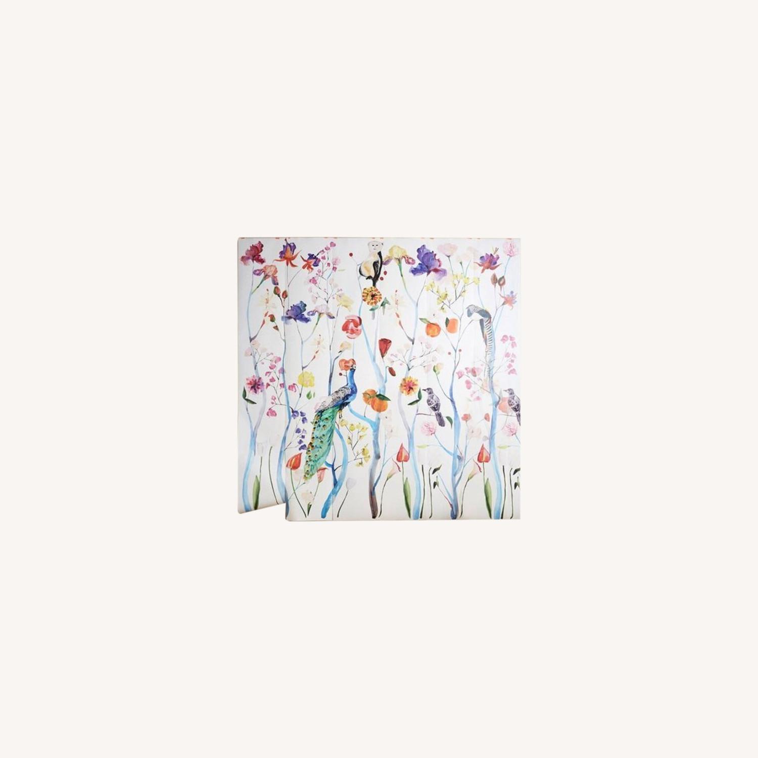 Seller's Notes:Hi there! We purchased this wallpaper directly from Anthro's corporate offices about two years ago for a photoshoot. We used it once, never actually sticking it on the wall, rolled it up with masking tape and haven't touched it since. It looks like there are a couple of small minor blemishes that can easily be removed with a touch of suds and a damp soft napkin. The mural is approx 6x9, comes in 6 panels, and is very vibrant. It would be beautiful in any home!