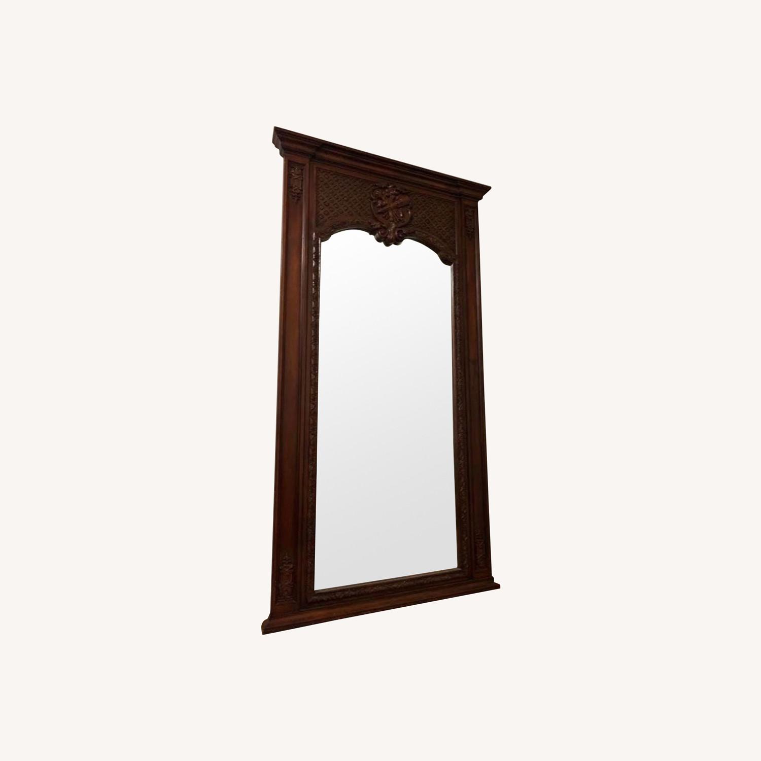 Seller's Notes:Gorgeous antique pier mirror from the 20th century. Hand carved. Perfect to mount on a wall or use as a large leaning mirror. Has a few minor scuffs on the wood from a previous move, but nothing noticeable.