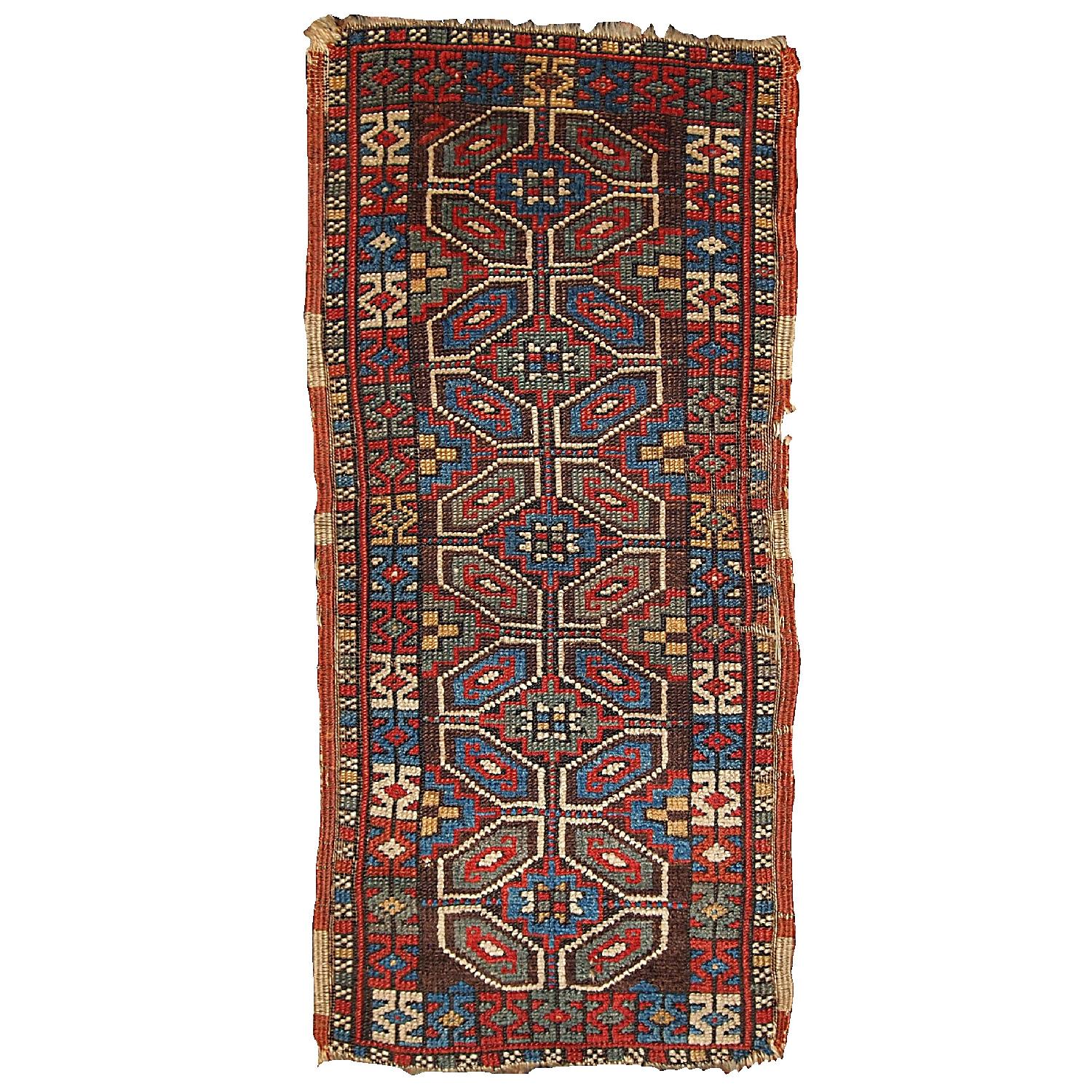 Seller's Notes:This Turkish Yastik has very rare design of Persian Khamseh rug. Same geometric style and shapes. Even the colors of chocolate brown, blue, beige and red which they used on it are more related to Persian Khamseh type of rugs.