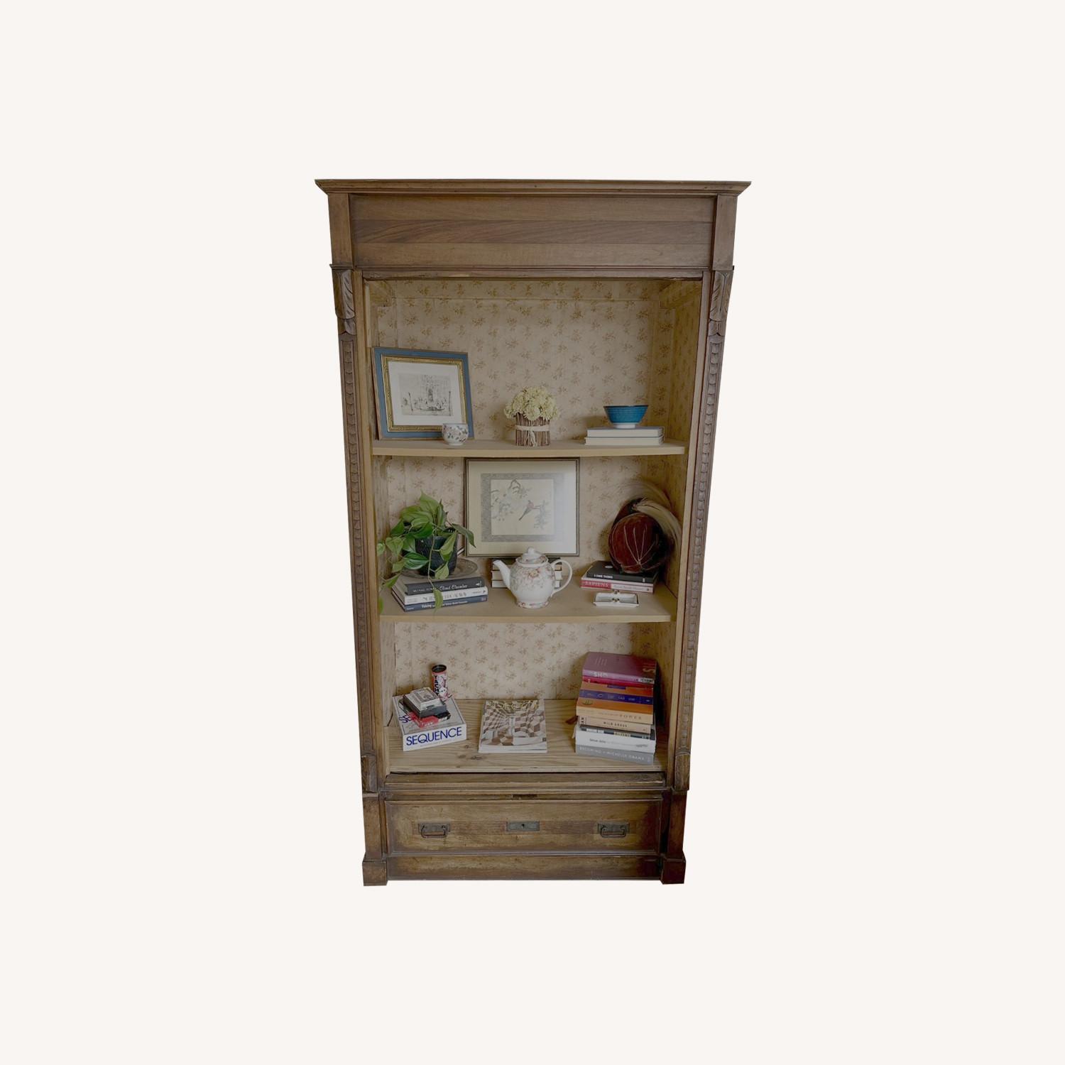 Seller's Notes:Own a true piece of history with this over-100-year-old solid wood bookshelf, complete with period wallpaper backing, unique brass hardware, and timeless craftsmanship. Built to last, this is the sturdiest bookshelf I have ever owned—and it has the stories to prove it. I discovered this gem in Atlanta and have traveled with it up and down the East Coast. It features a bottom drawer for storage, and later added removable inner shelves for customizing your display. Details You’ll Love: Authentic early 1900s solid wood construction Original brass hardware & period wallpaper backing Bottom drawer for hidden storage Removable shelves for flexible arrangement Perfect for books, décor, or as a statement piece in any room. This is not mass-produced furniture—it’s a rare, heirloom-quality find that will outlast anything you buy new today.