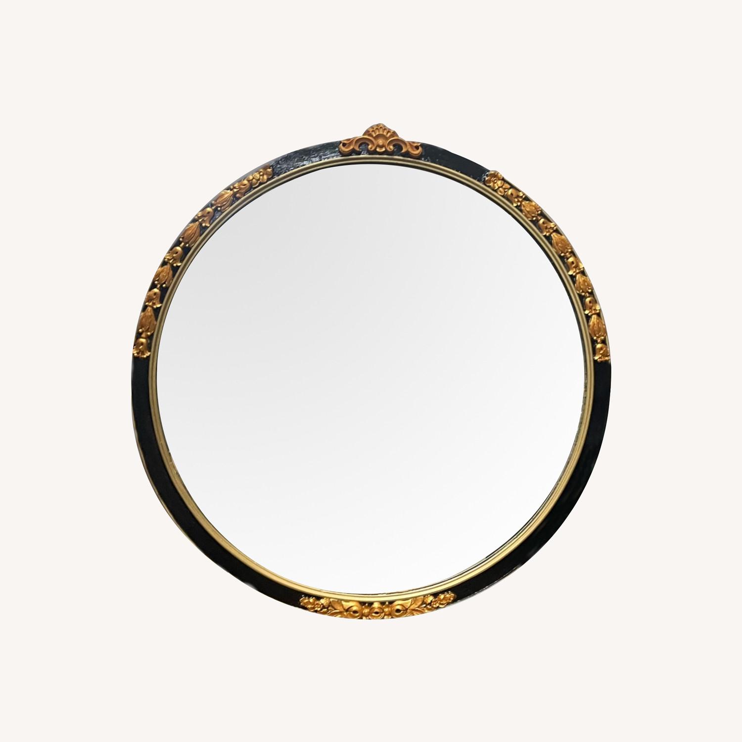 Antique 1900s Wood Framed Hand Painted Wall Mirror