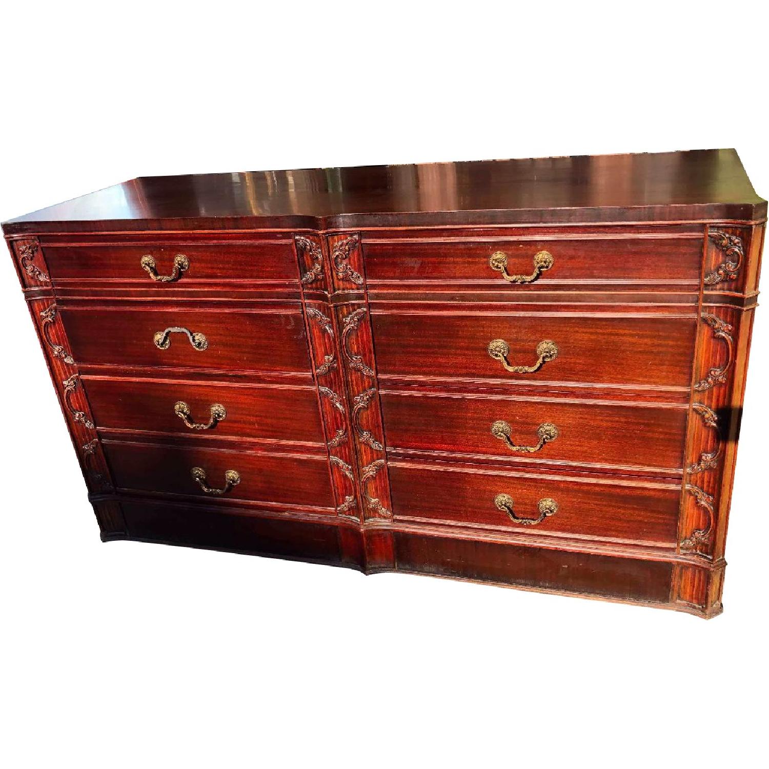 Antique 1930s Cherry Wood Leather Front 8 Drawer Dresser