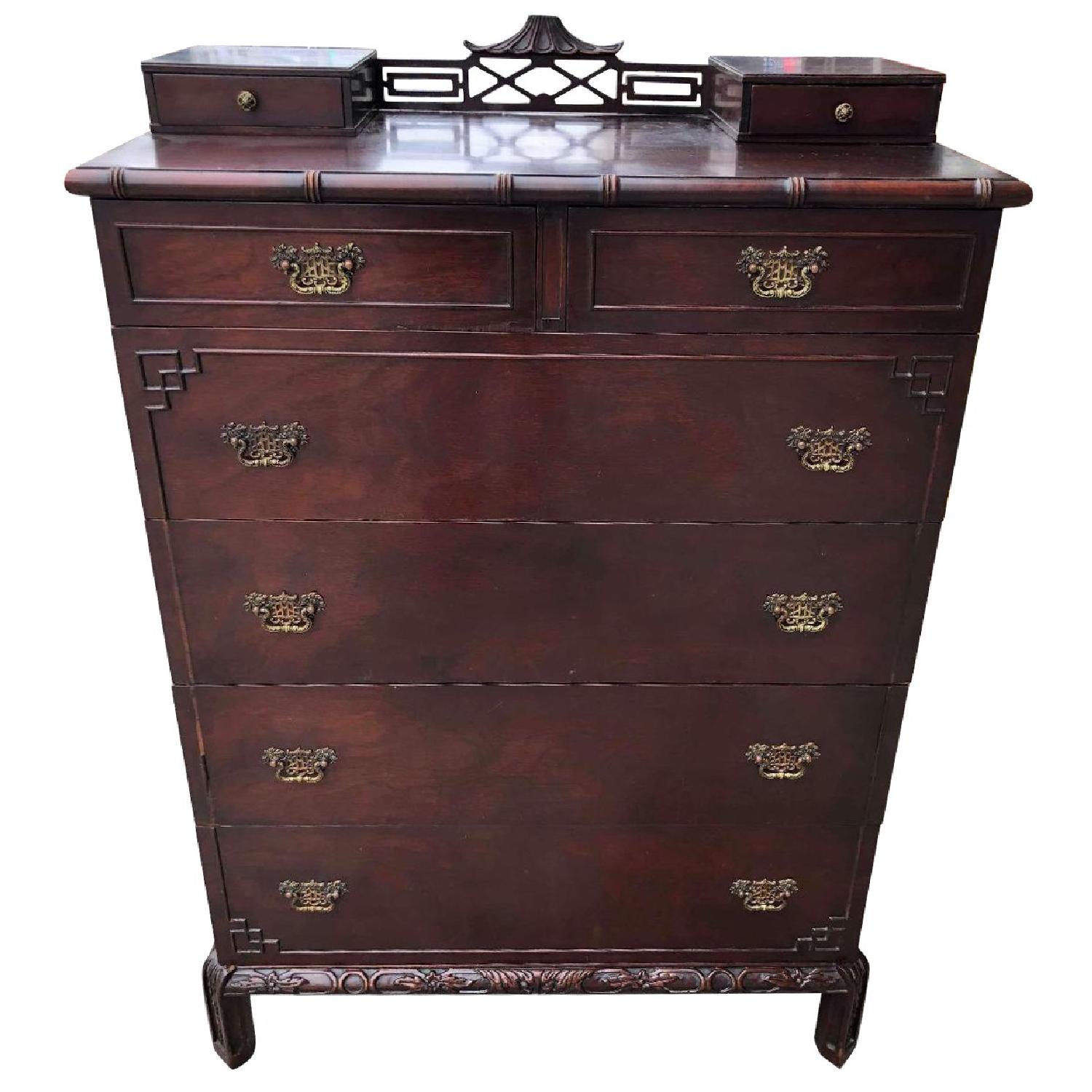 Antique 1930s Cherry Wood Oriental Style Dresser