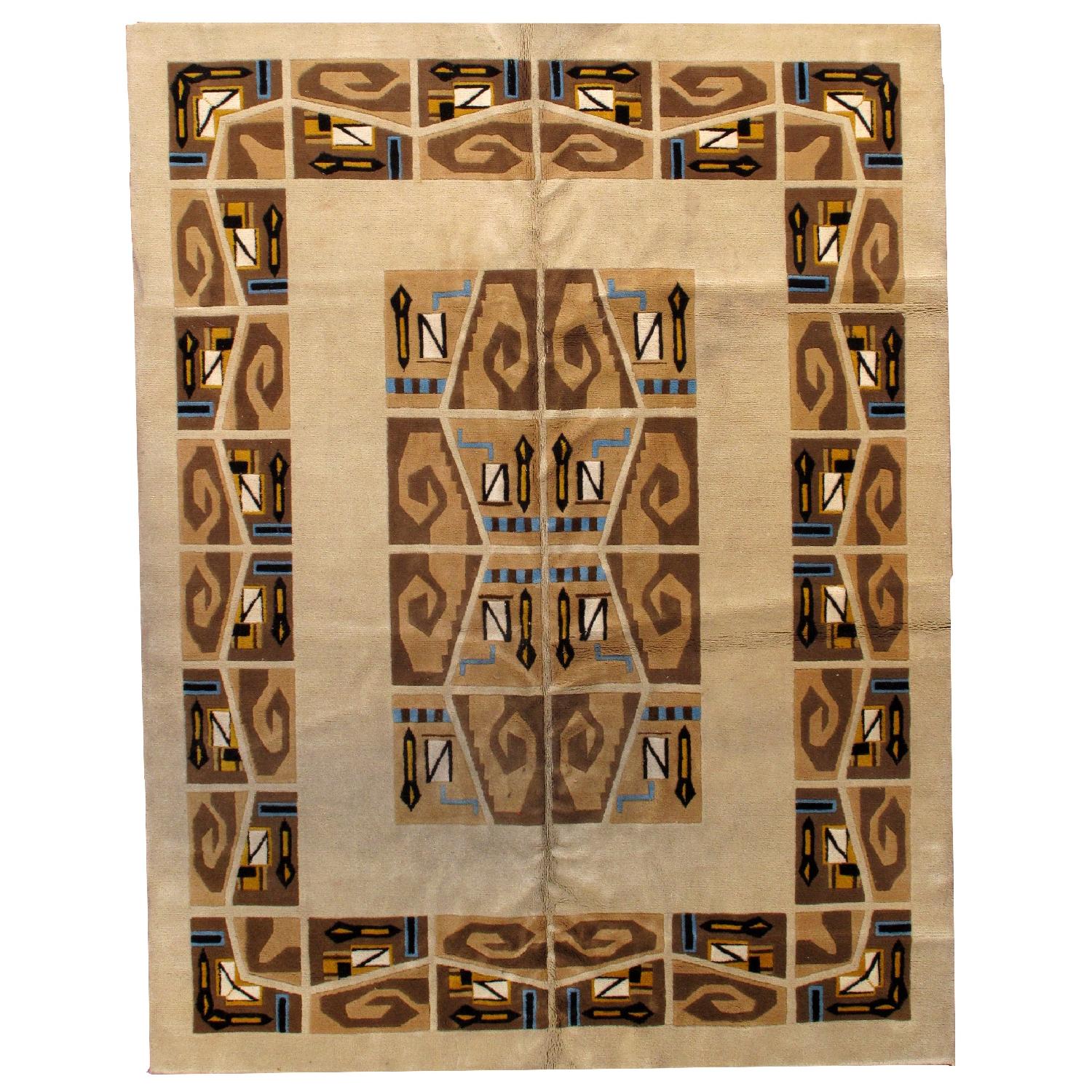 Seller's Notes:Hand made antique Ecuadorian rug in original condition. The rug has wonderful geometric design on the light beige firld.